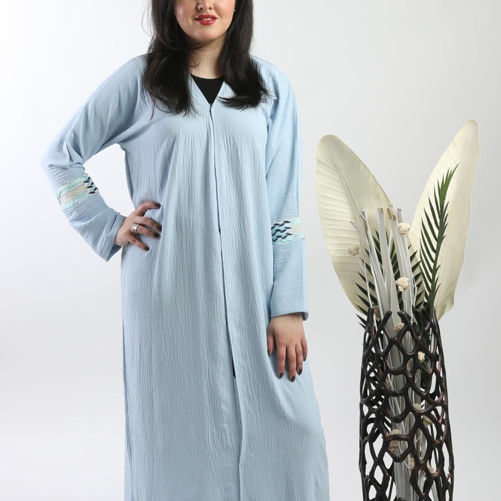 أمول – عباية سودا ء بتطاريز لون نحاسي ولون ازرق 6045