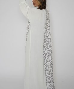 أمول – عباية سوداء بقماش مقلم في الكم والاطراف R1097