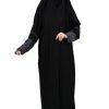 أمول – عباية سوداء بتداخل قماش وفصوص فضية طولية وعلى الكم 5083