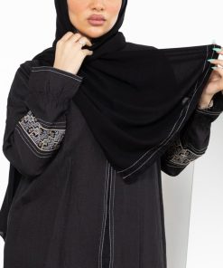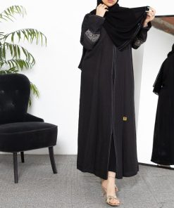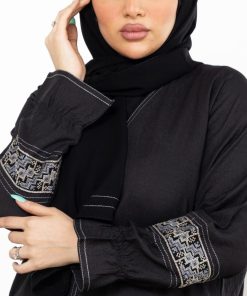 أمول – عباية سوداء بتطريز بأطراف العباية مع كسرات فاخرة من الخلف 6028
