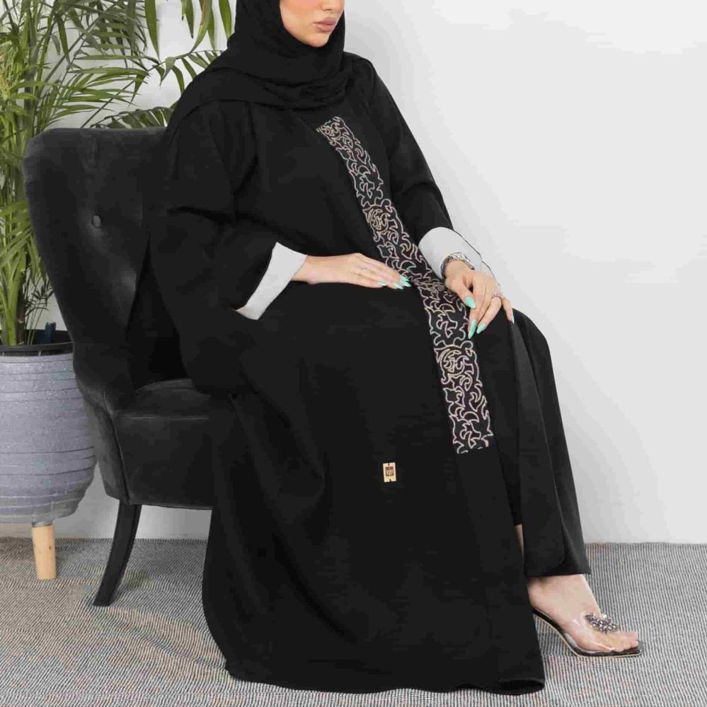 أمول – عباية سودا ء بتطاريز لون نحاسي ولون ازرق 6045