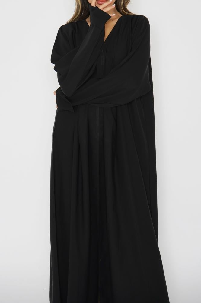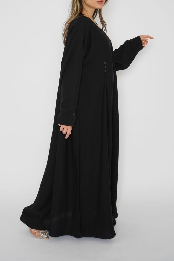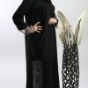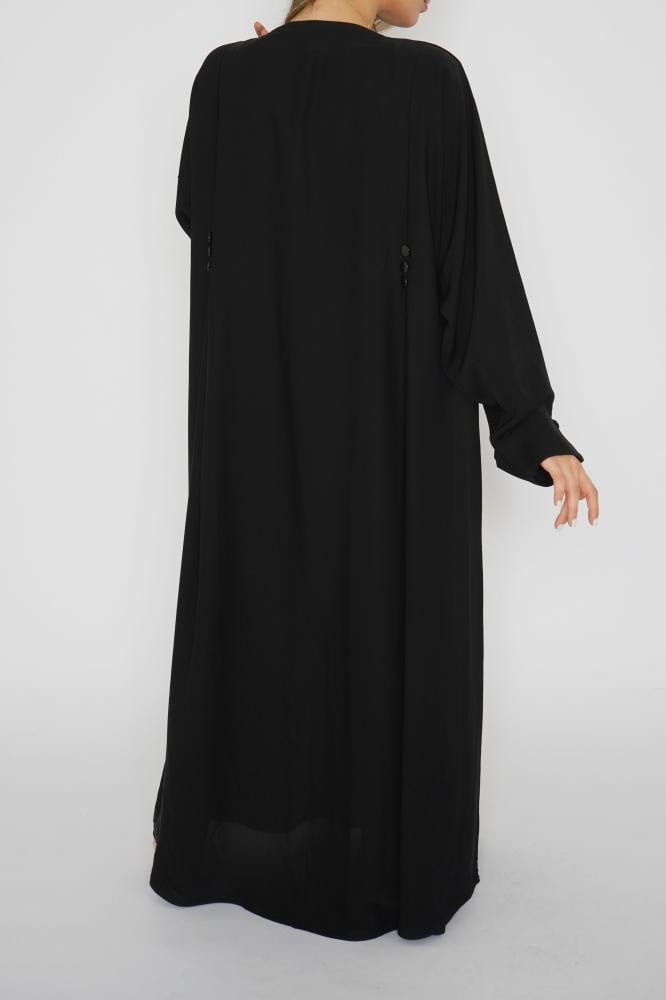 أمول – عباية سوداء بطقطق وجيوب مطرزة من الجنب N1073