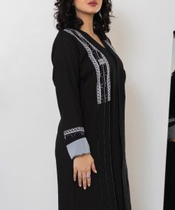 أمول – عباية سودا ء ربع كلوش تطريز كمبيوتر لون ابيض و اسود 6046