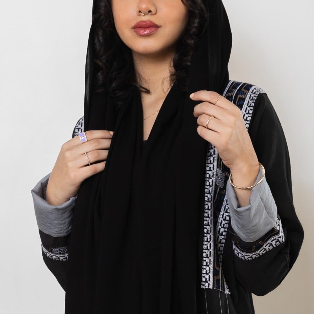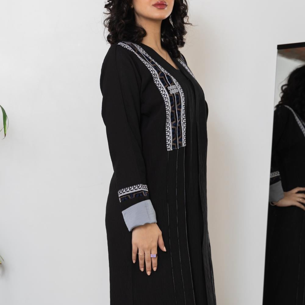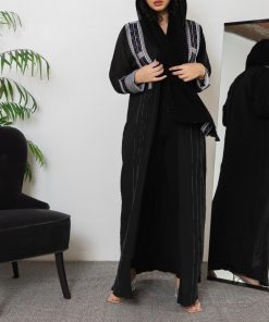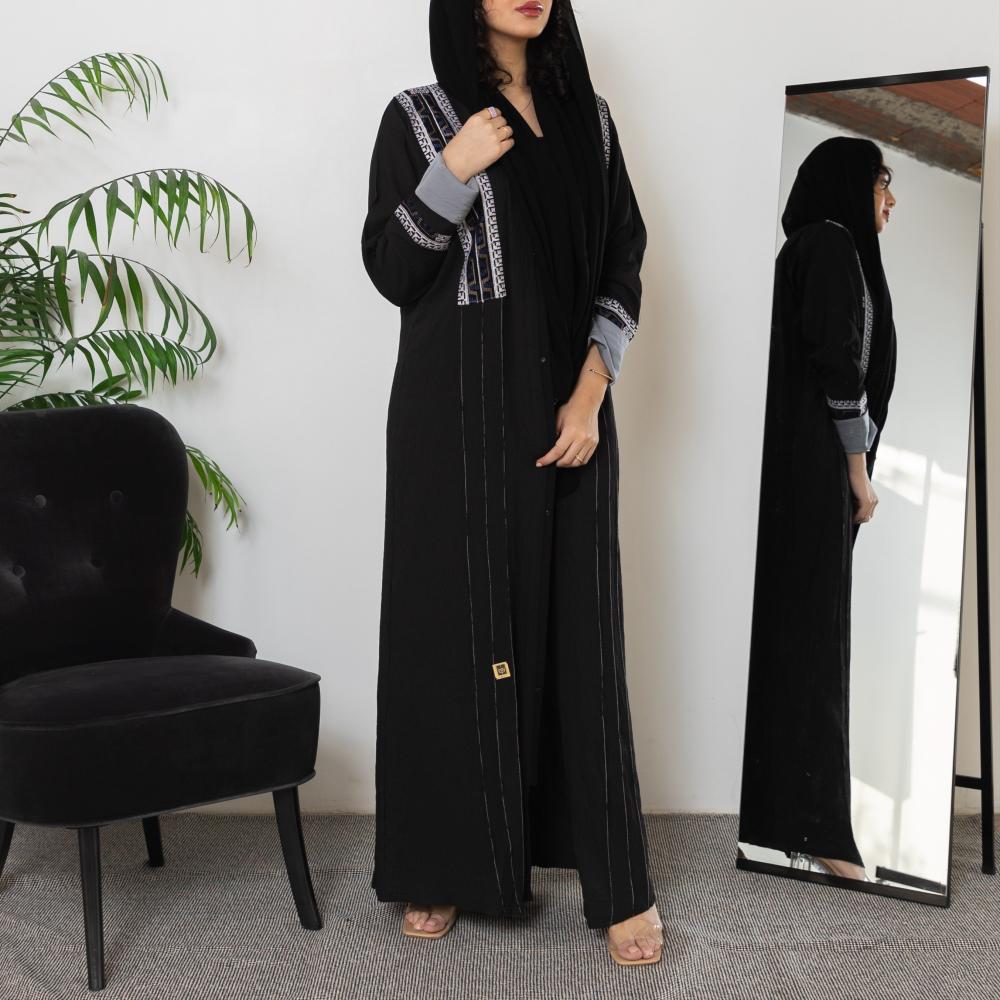 أمول – عباية سوداء بأكمام واسعه ملونة وتطريز مميز R1116