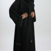 أمول – عباية سوداء بقماش مقلم في الكم والاطراف R1097