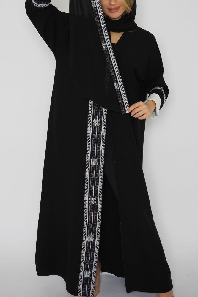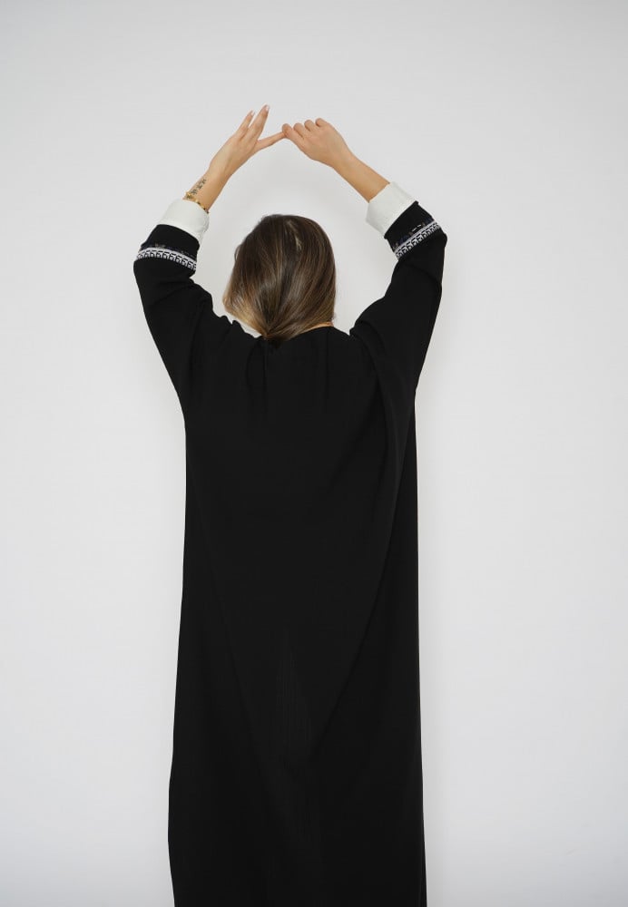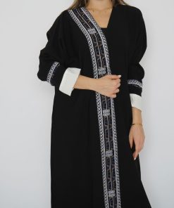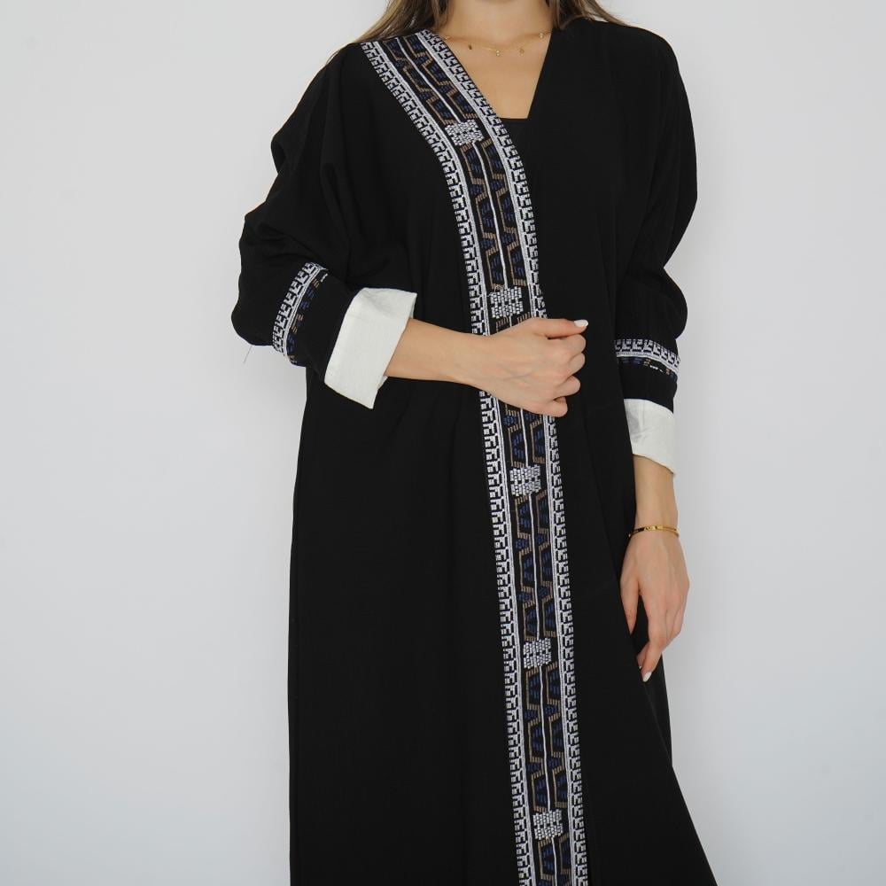 أمول – عباية سوداء بأكمام واسعه ملونة وتطريز مميز R1116