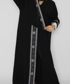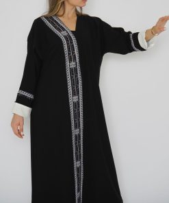 أمول – عباية سوداء بطقطق وجيوب مطرزة من الجنب N1073