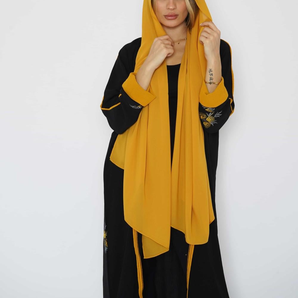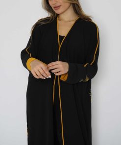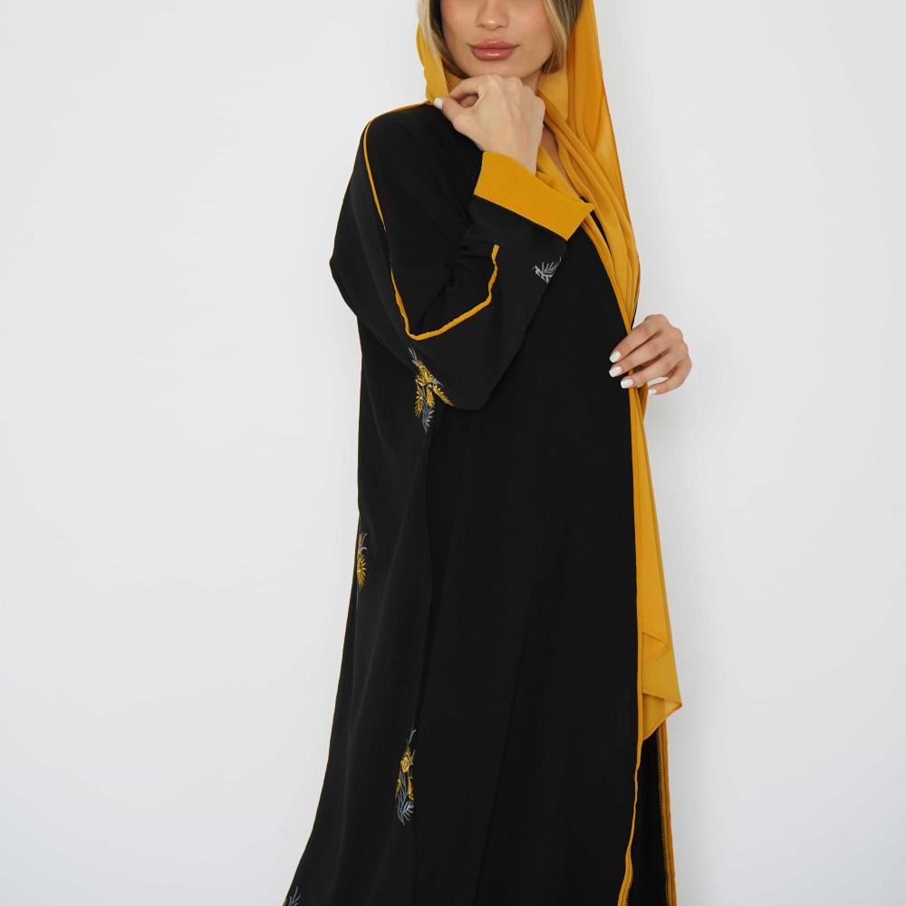 أمول – عباية سودا ء ربع كلوش تطريز كمبيوتر لون ابيض و اسود 6046