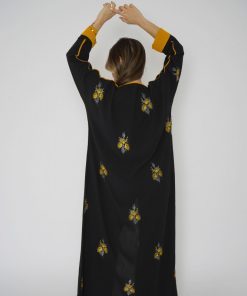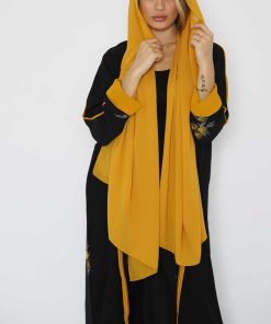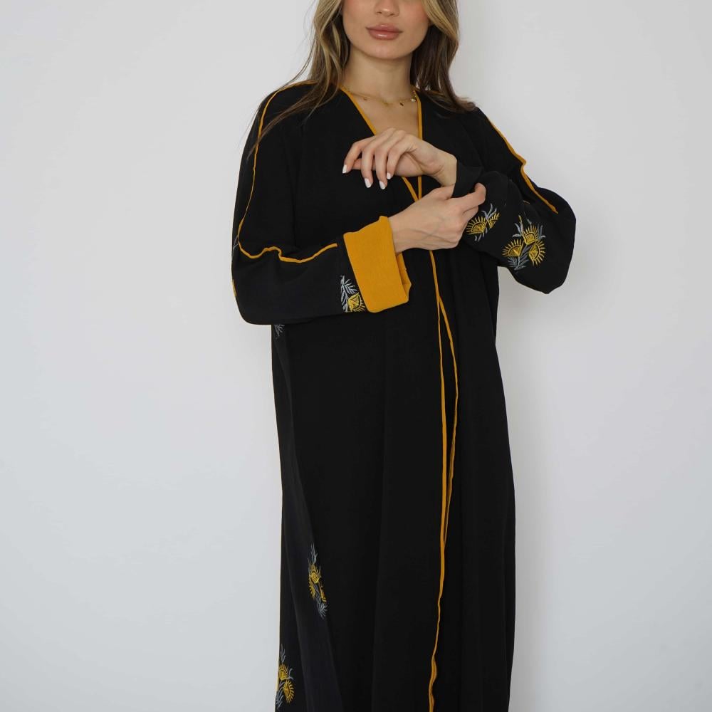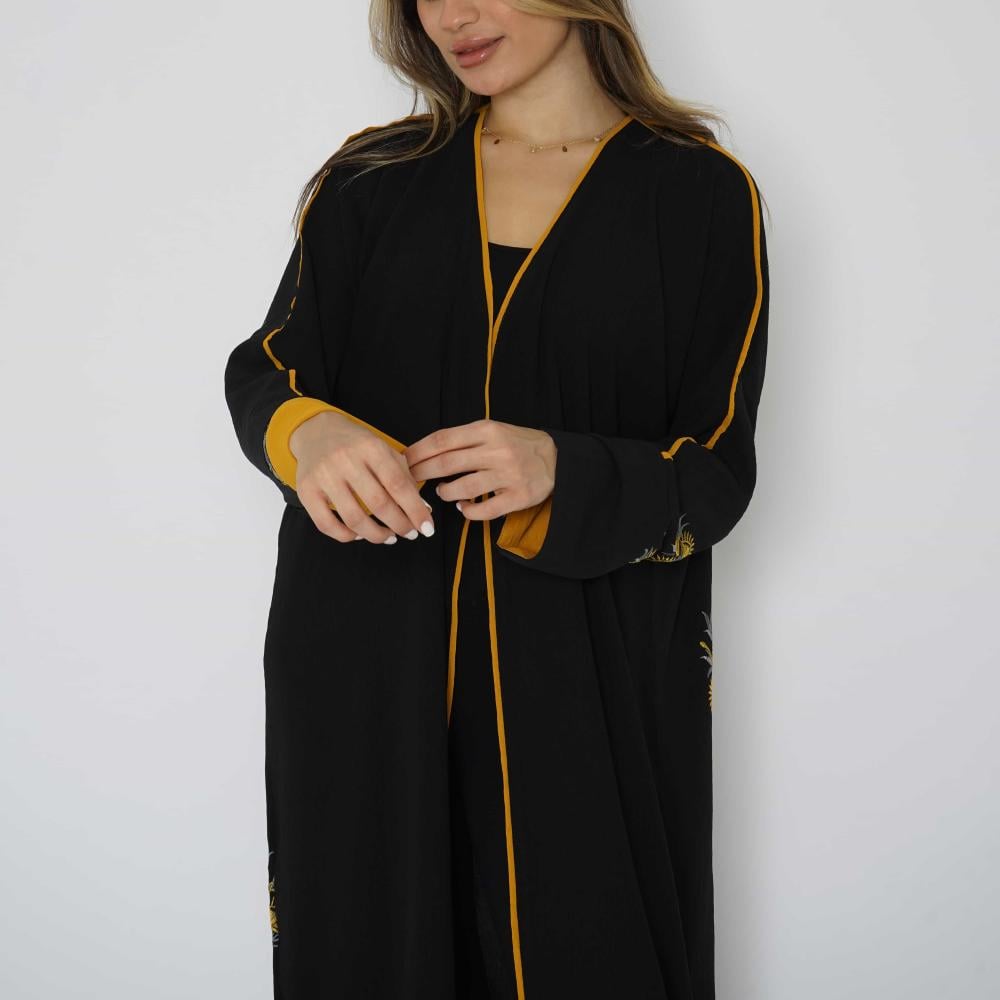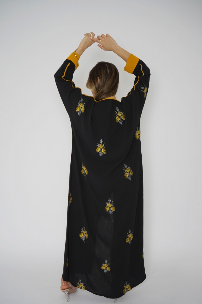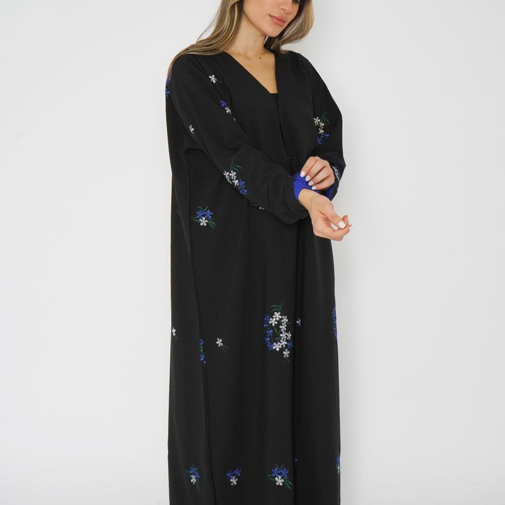 أمول – عباية سودا ء تطريز شك يدوي لون ابيض على شكل ورود 6051
