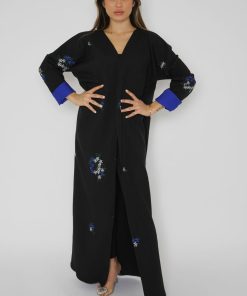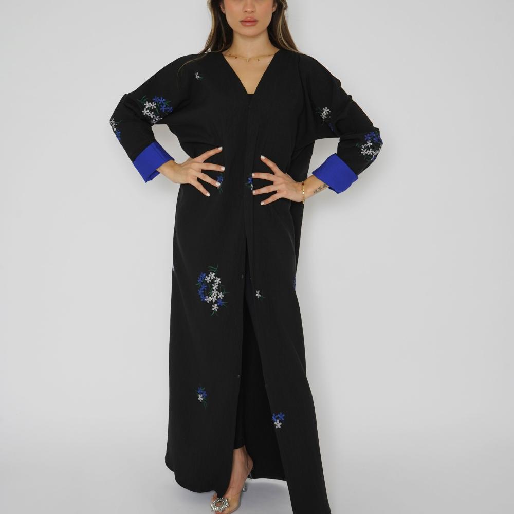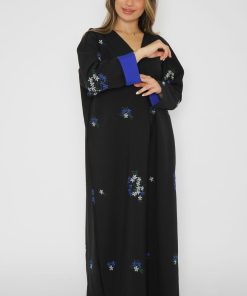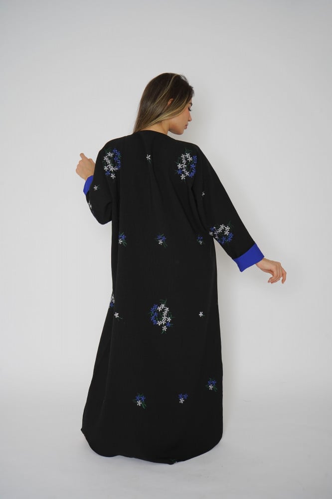 أمول – عباية سوداء بتطريز بأطراف العباية مع كسرات فاخرة من الخلف 6028