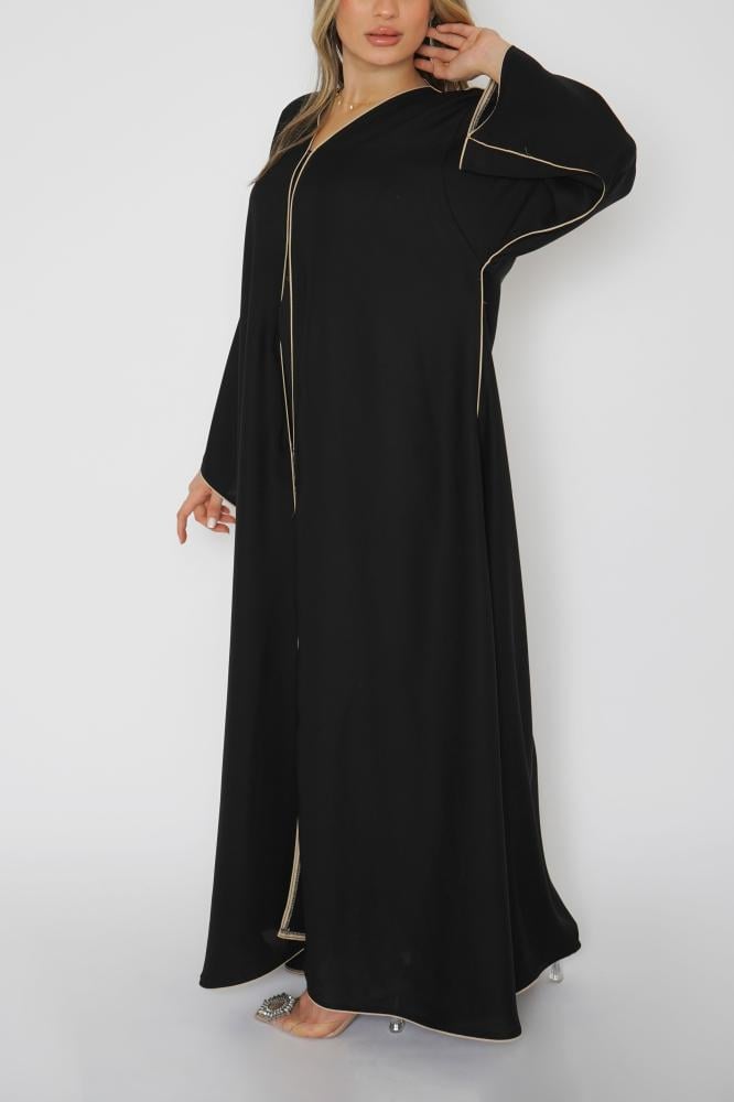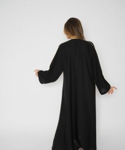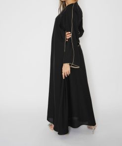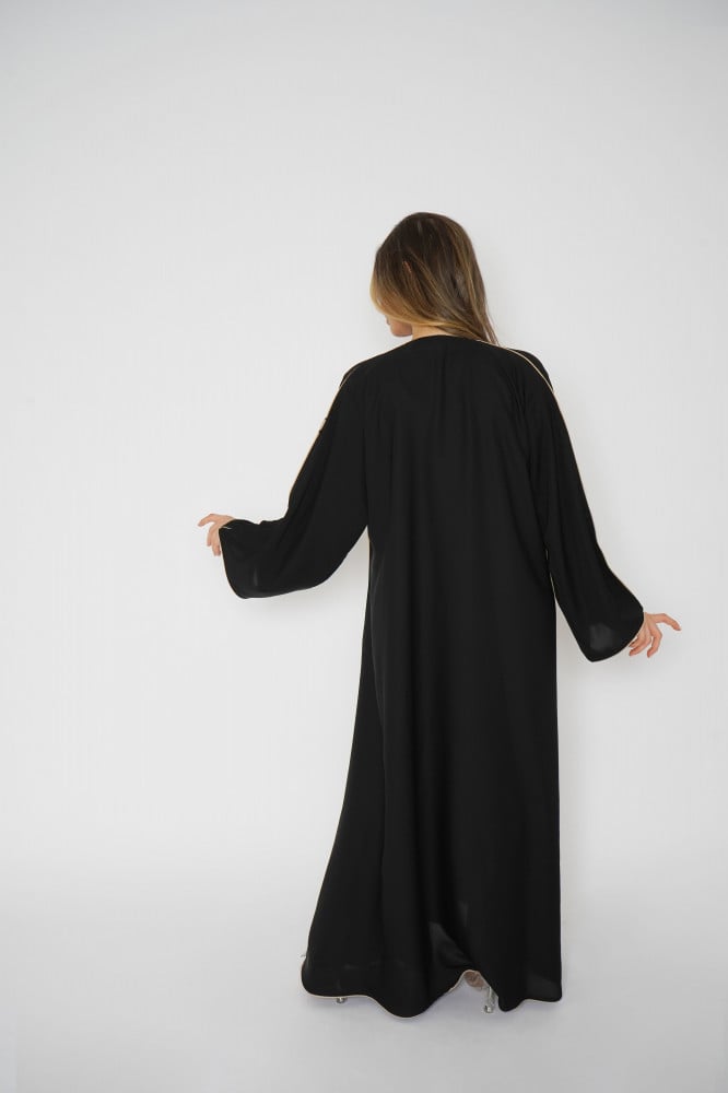 أمول – عباية سوداء بطقطق وجيوب مطرزة من الجنب N1073