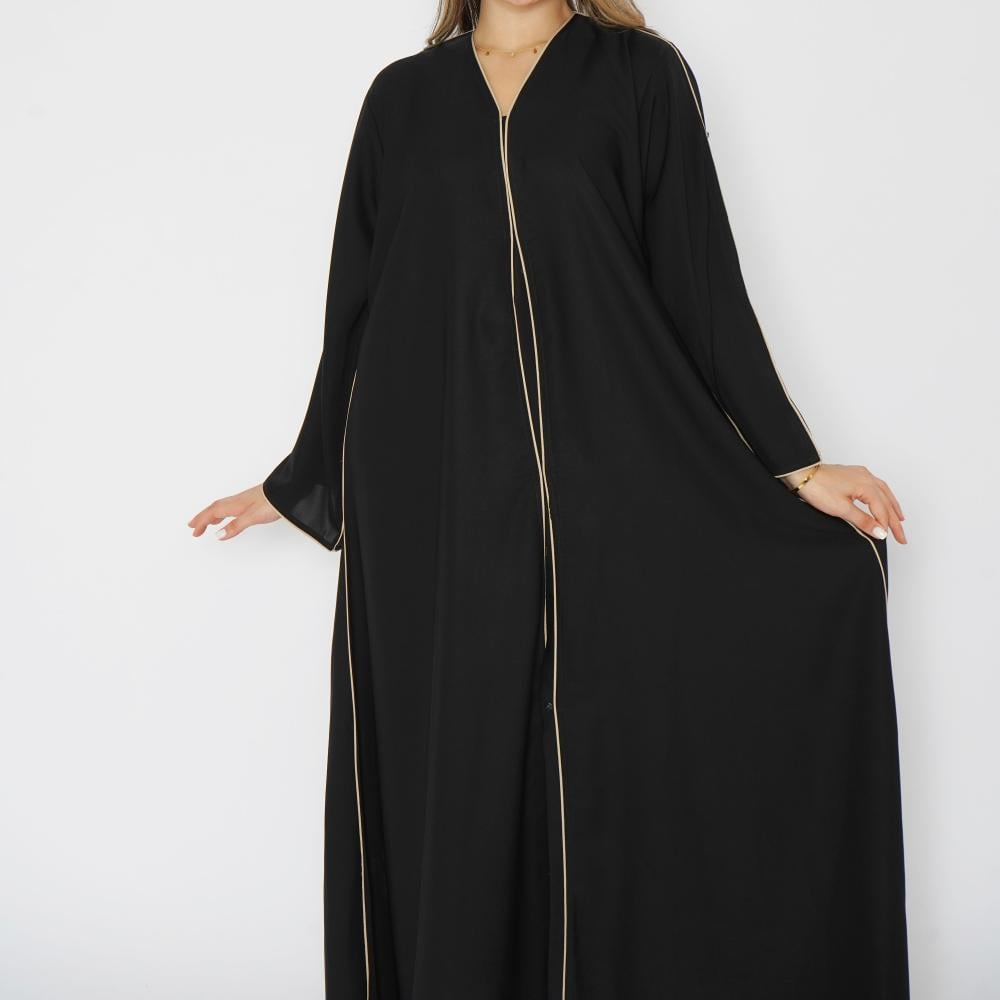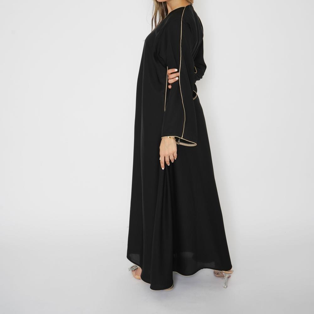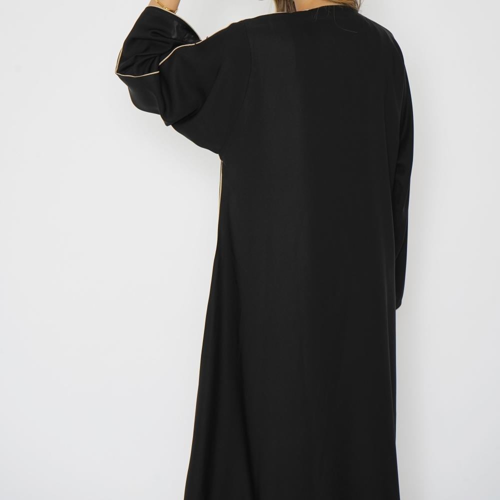 أمول – عباية سوداء بأكمام واسعه ملونة وتطريز مميز R1116