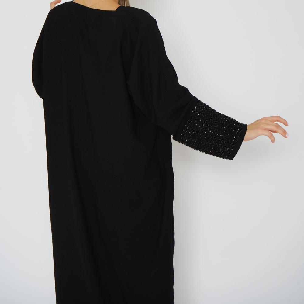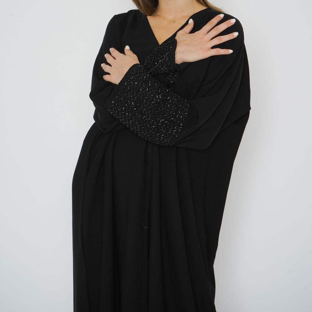 أمول – عباية سوداء بأكمام واسعه ملونة وتطريز مميز R1116