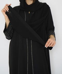أمول – عباية سوداء بتطريز بأطراف العباية مع كسرات فاخرة من الخلف 6028