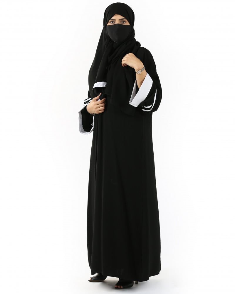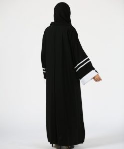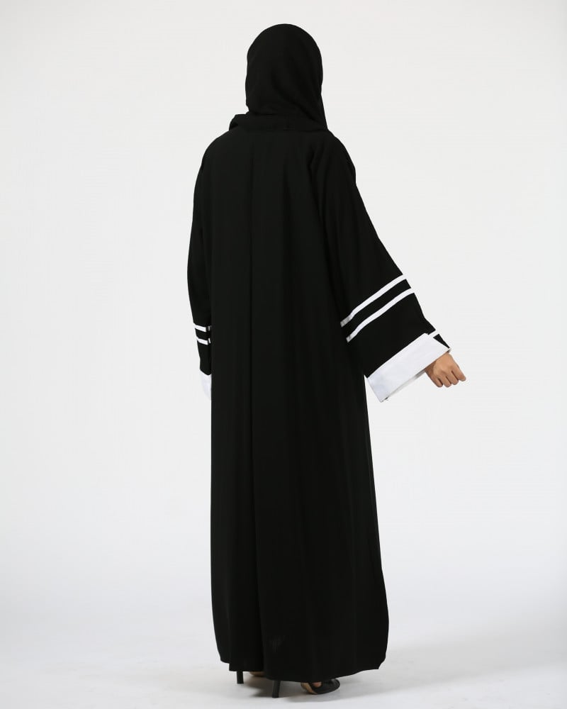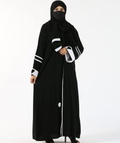 أمول – عباية سودا ء ربع كلوش تطريز كمبيوتر لون ابيض و اسود 6046
