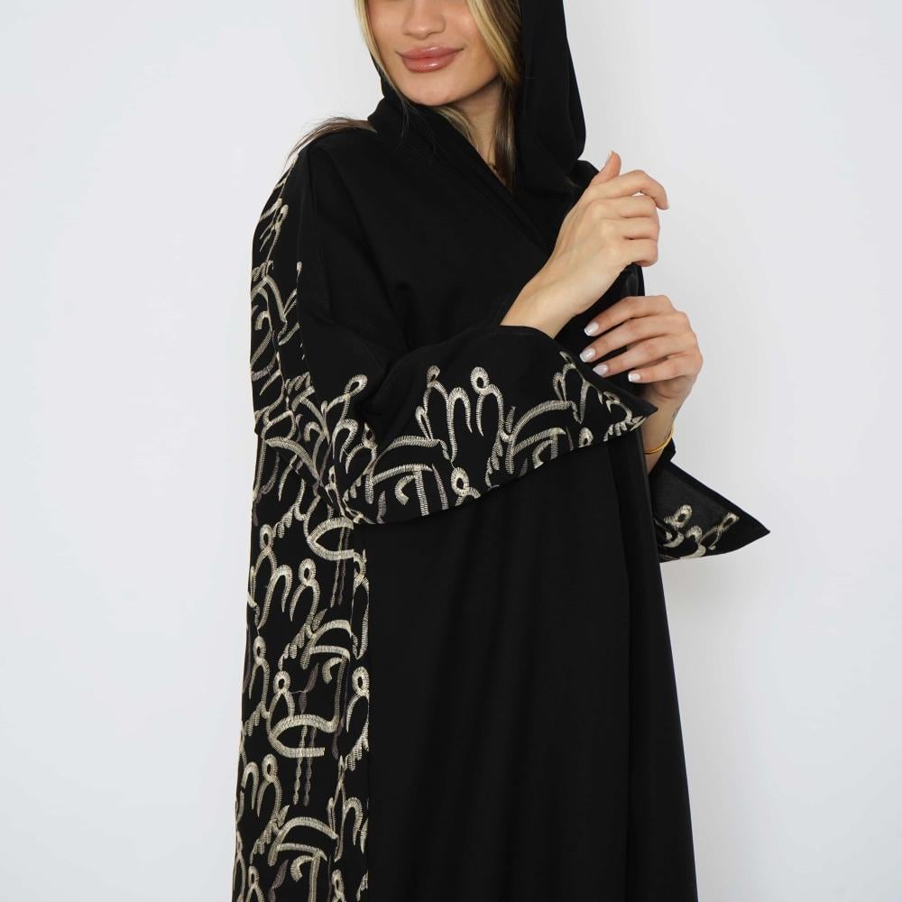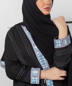 أمول – عباية سوداء بأكمام واسعه ملونة وتطريز مميز R1116