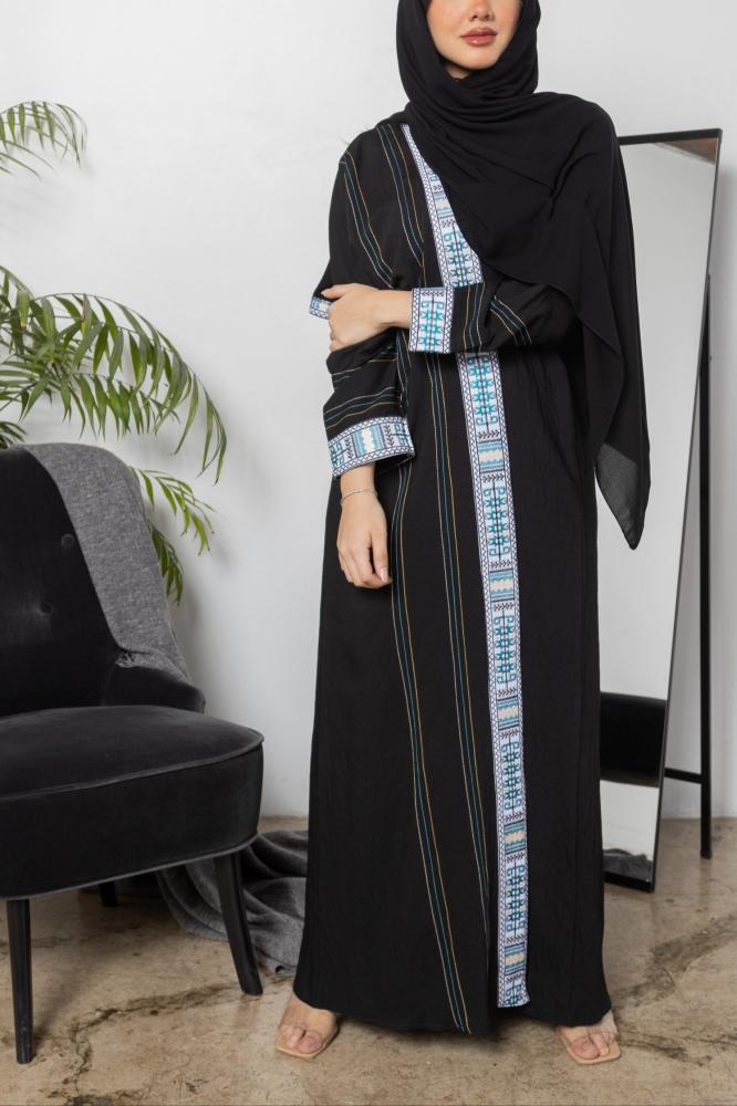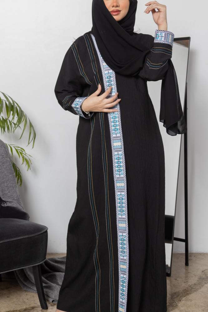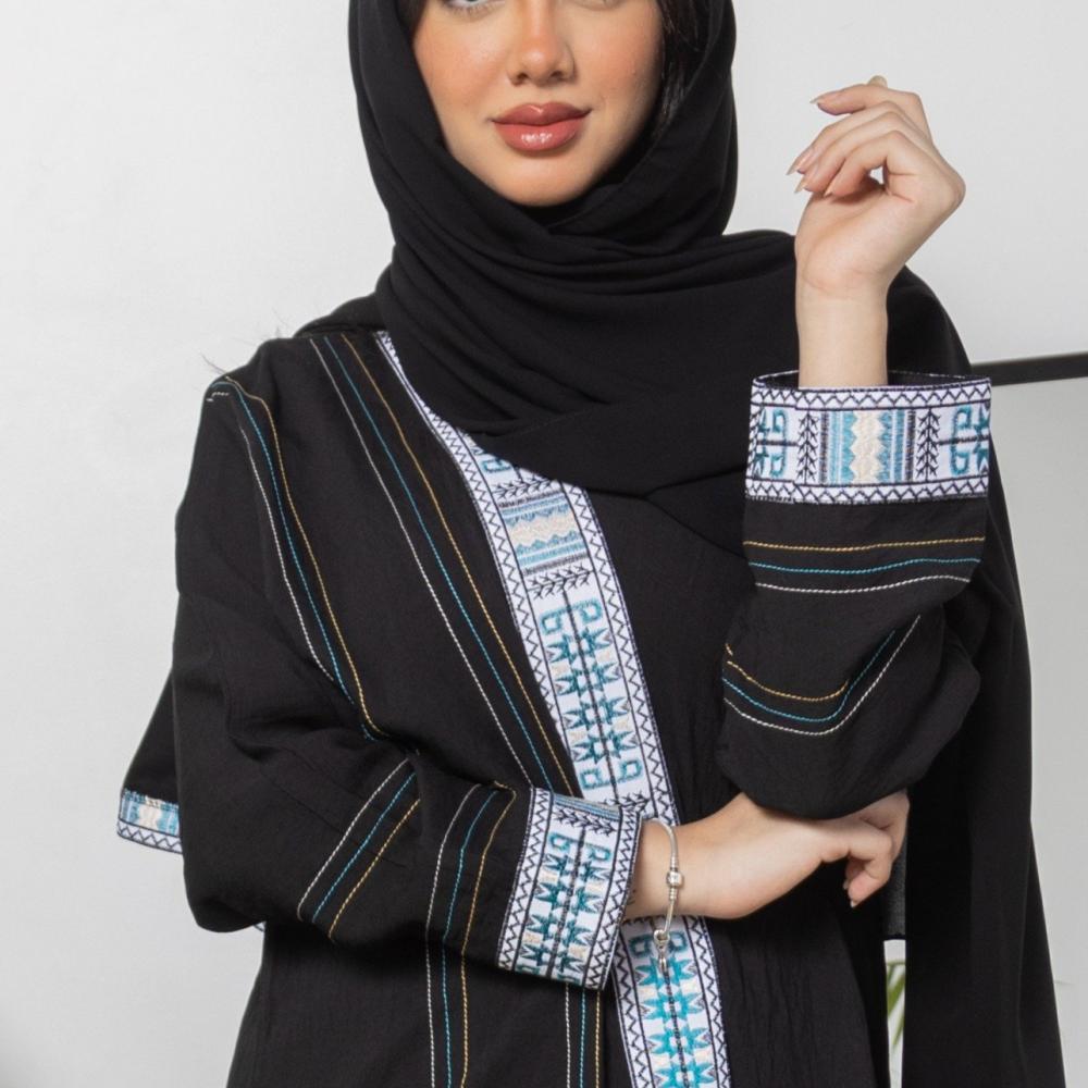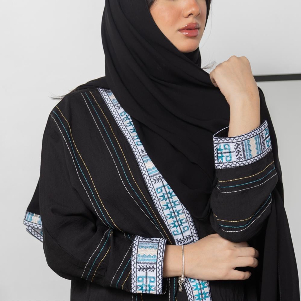 عباية سوداء سادة بتطريز السدو