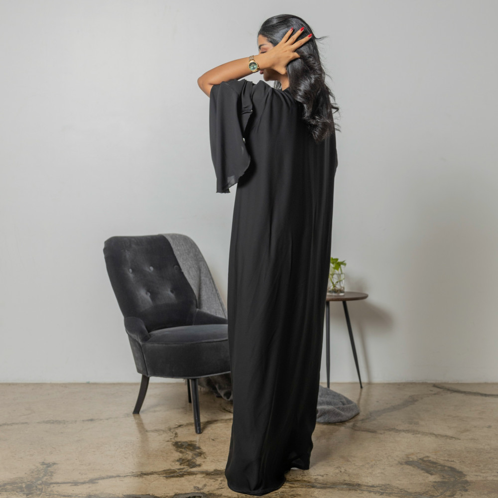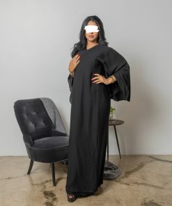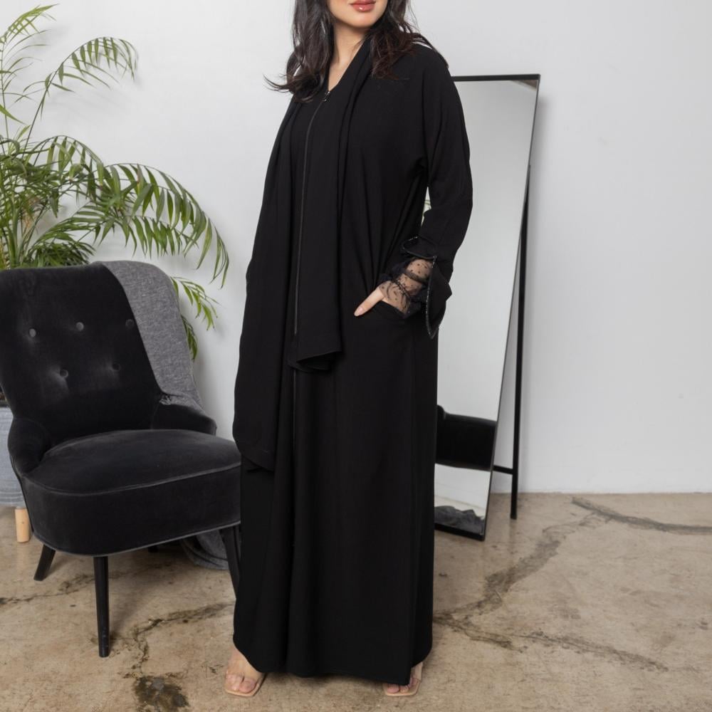 أمول – عباية سوداء بطقطق وجيوب مطرزة من الجنب N1073