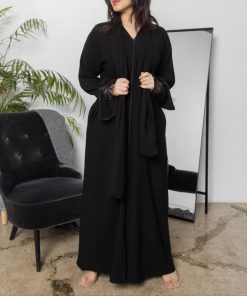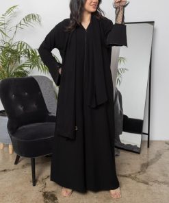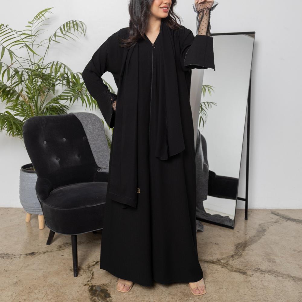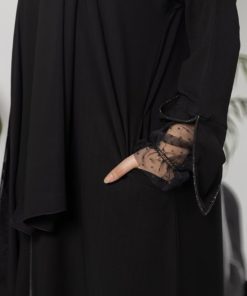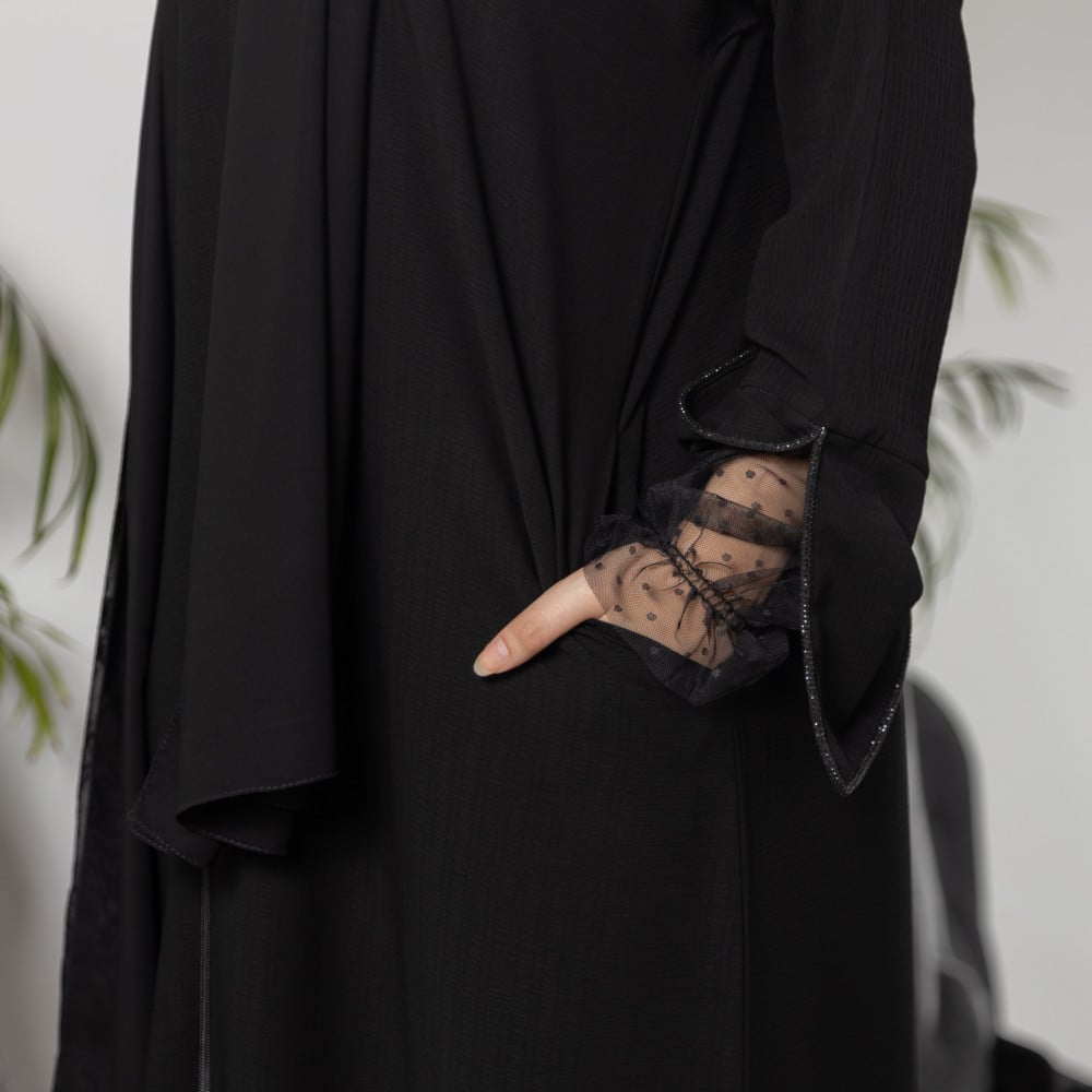 أمول – عباية سوداء بتطريز بأطراف العباية مع كسرات فاخرة من الخلف 6028