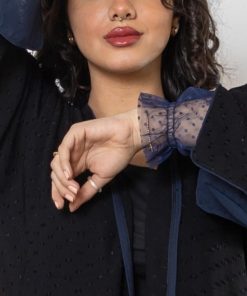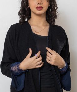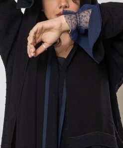 أمول – عباية سوداء بأكمام واسعه ملونة وتطريز مميز R1116