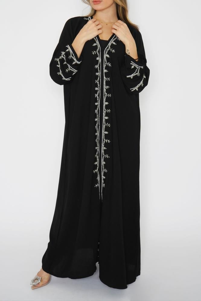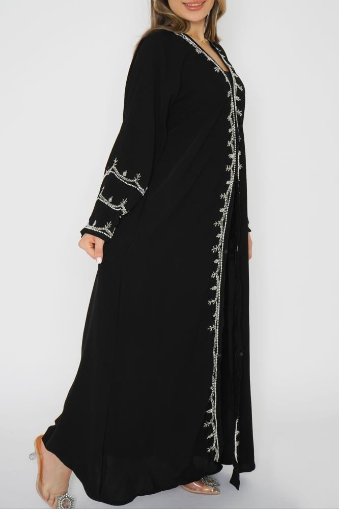 أمول – عباية سوداء بطقطق وجيوب مطرزة من الجنب N1073