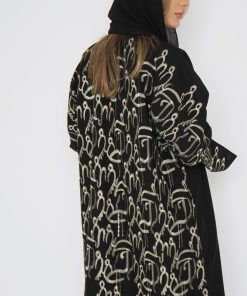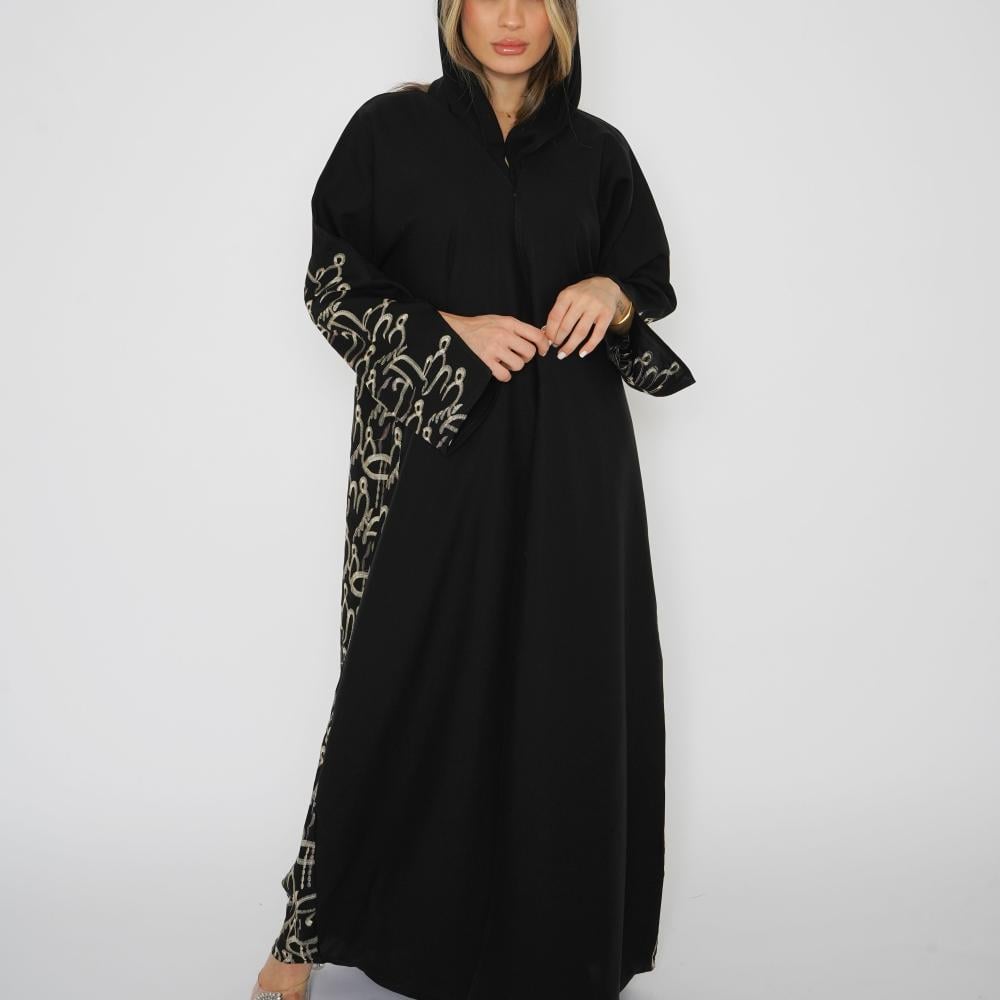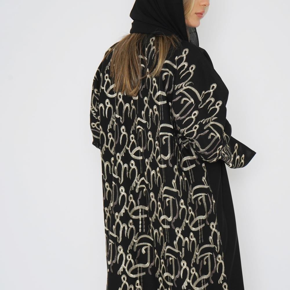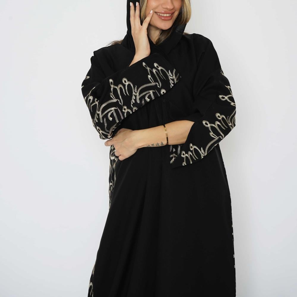 أمول – عباية سودا ء ربع كلوش تطريز كمبيوتر لون ابيض و اسود 6046