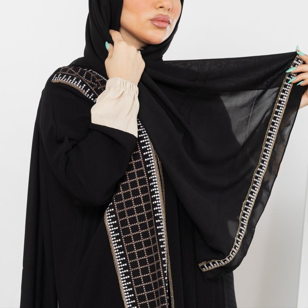 أمول – عباية سودا ء ربع كلوش تطريز كمبيوتر لون ابيض و اسود 6046
