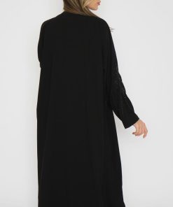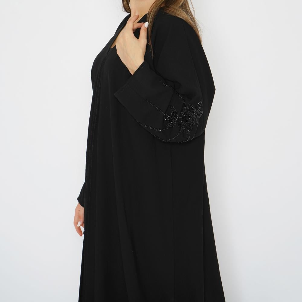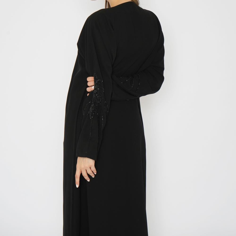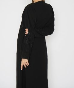أمول – عباية سوداء بأكمام واسعه ملونة وتطريز مميز R1116