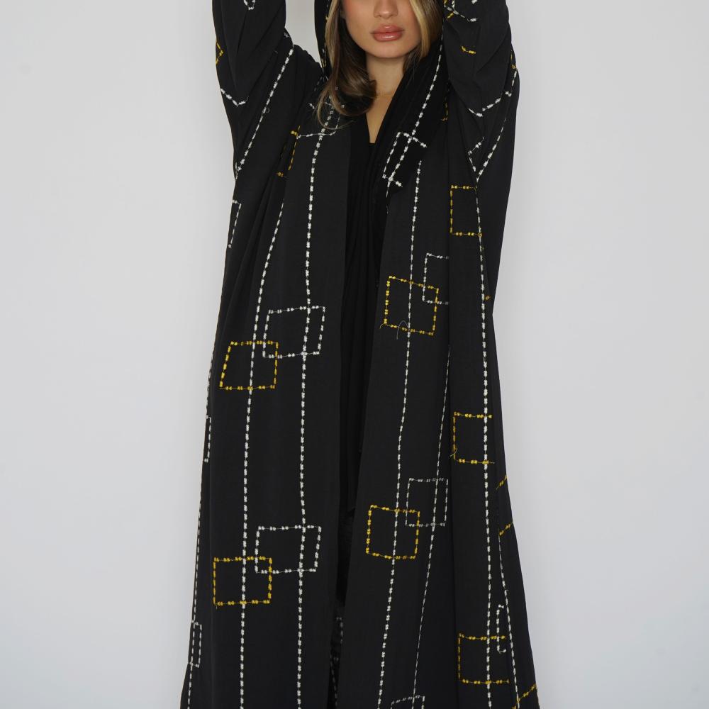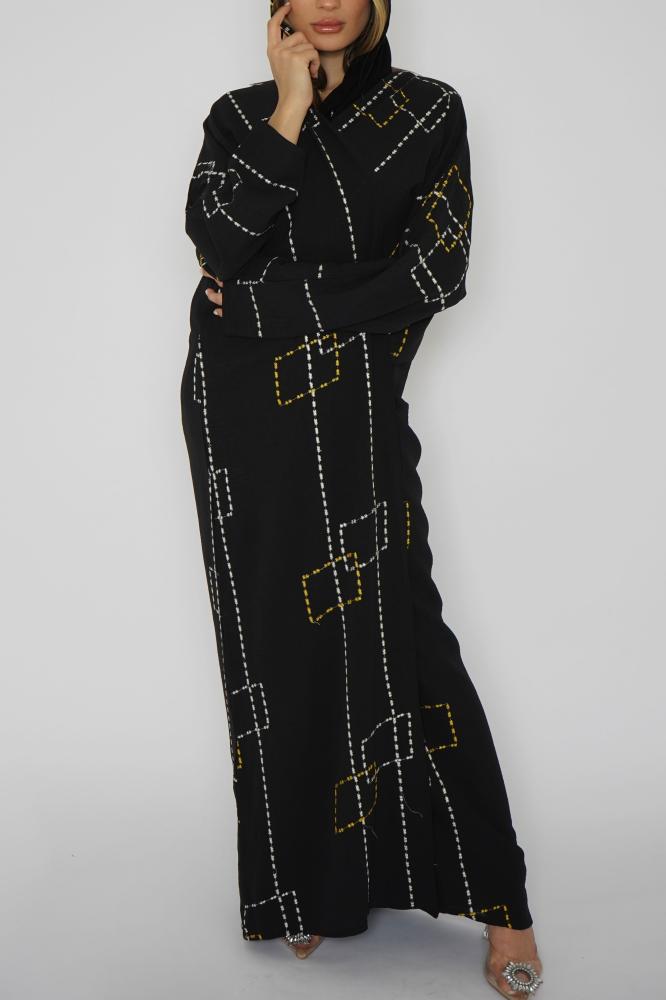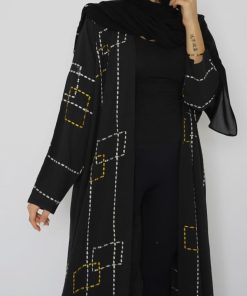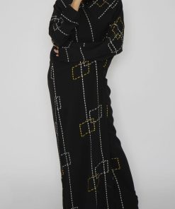 أمول – عباية سوداء بطقطق وجيوب مطرزة من الجنب N1073