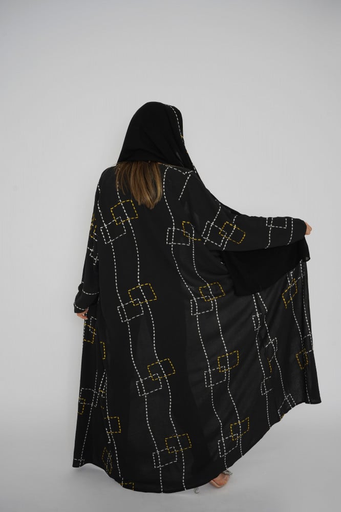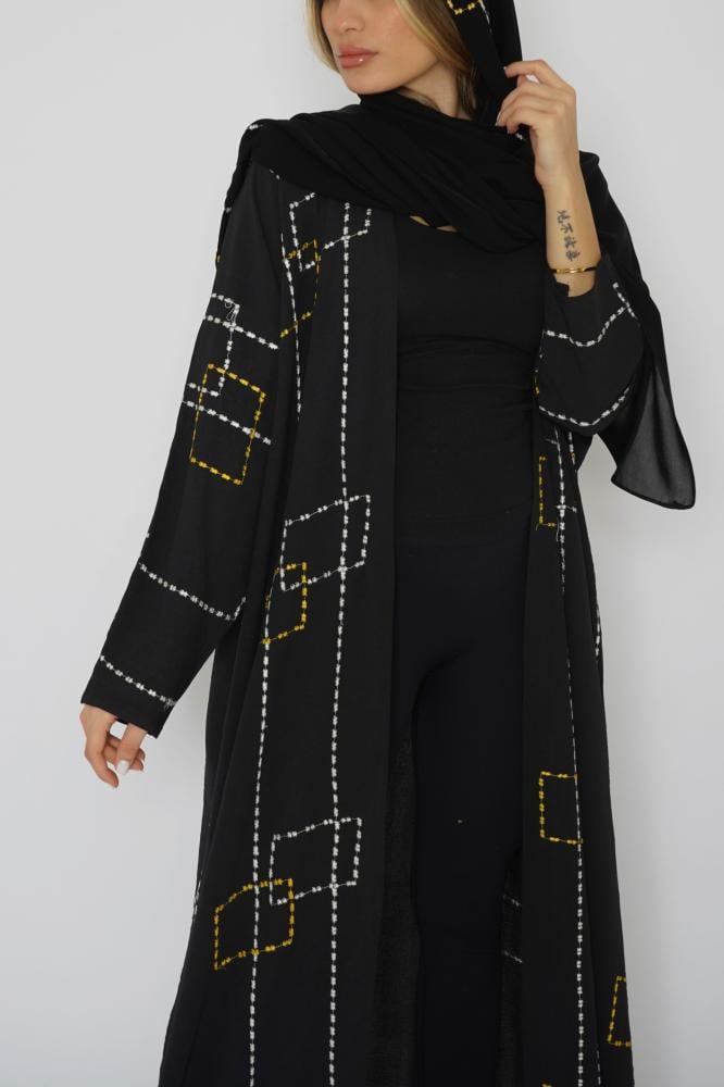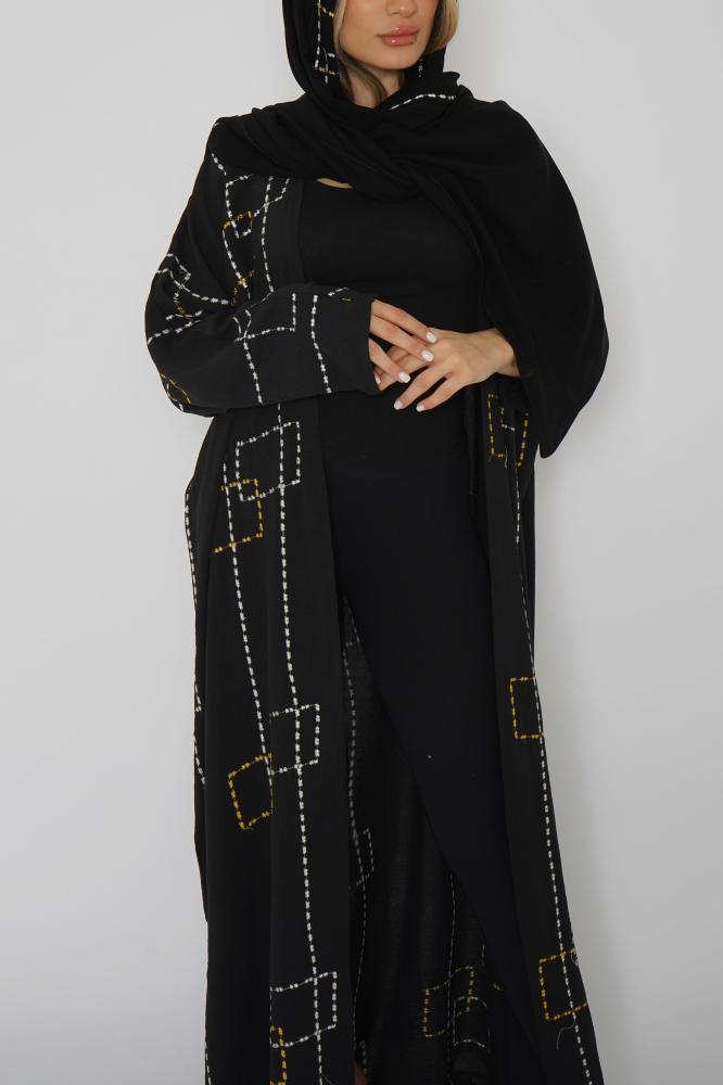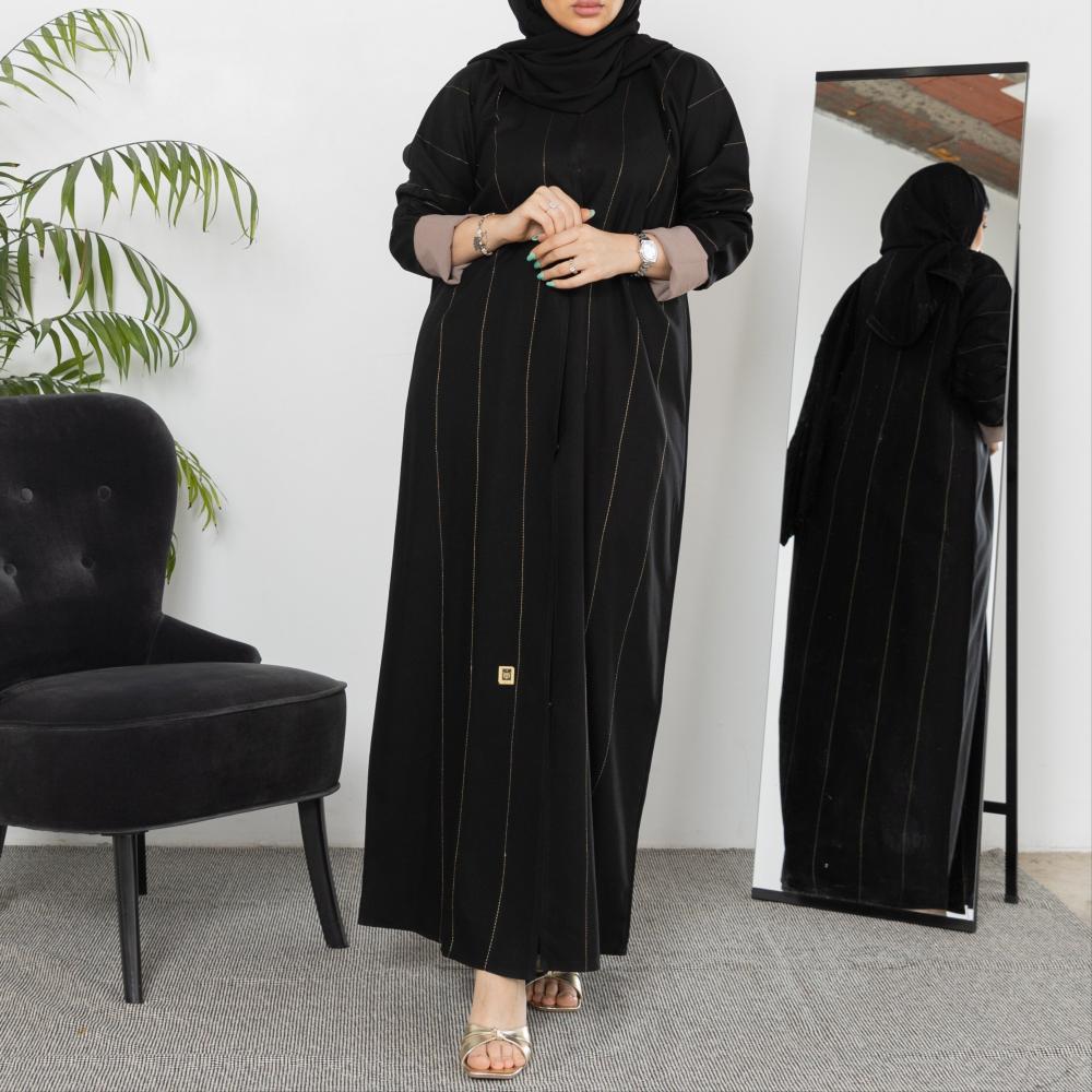أمول – عباية سوداء بتطريز بأطراف العباية مع كسرات فاخرة من الخلف 6028