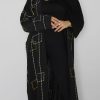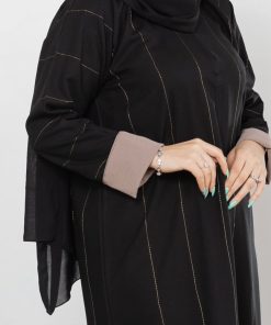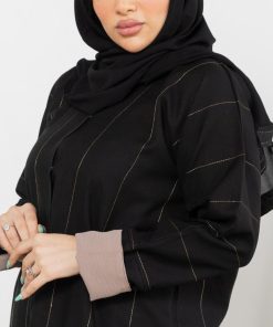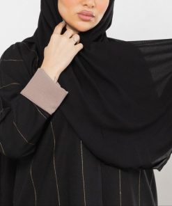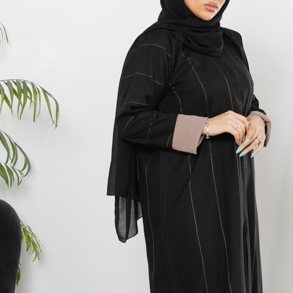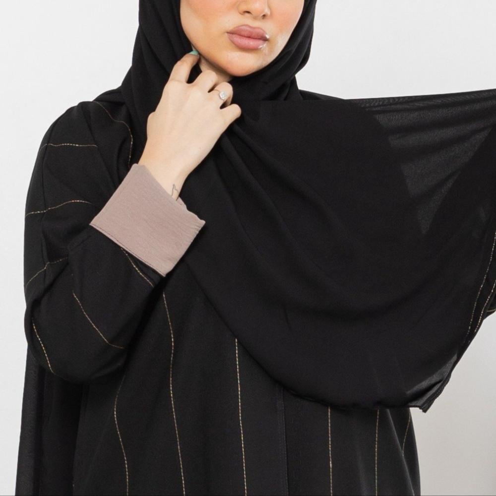 عباية سوداء كلاسيك مخططة