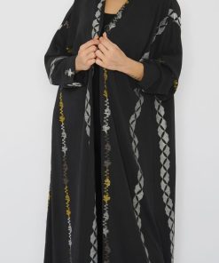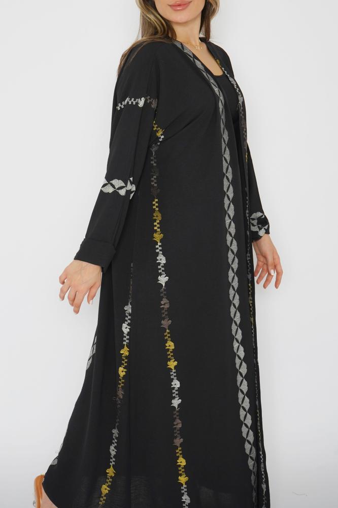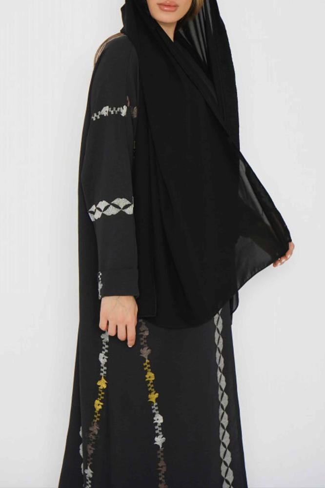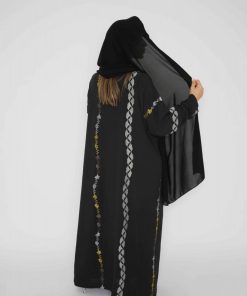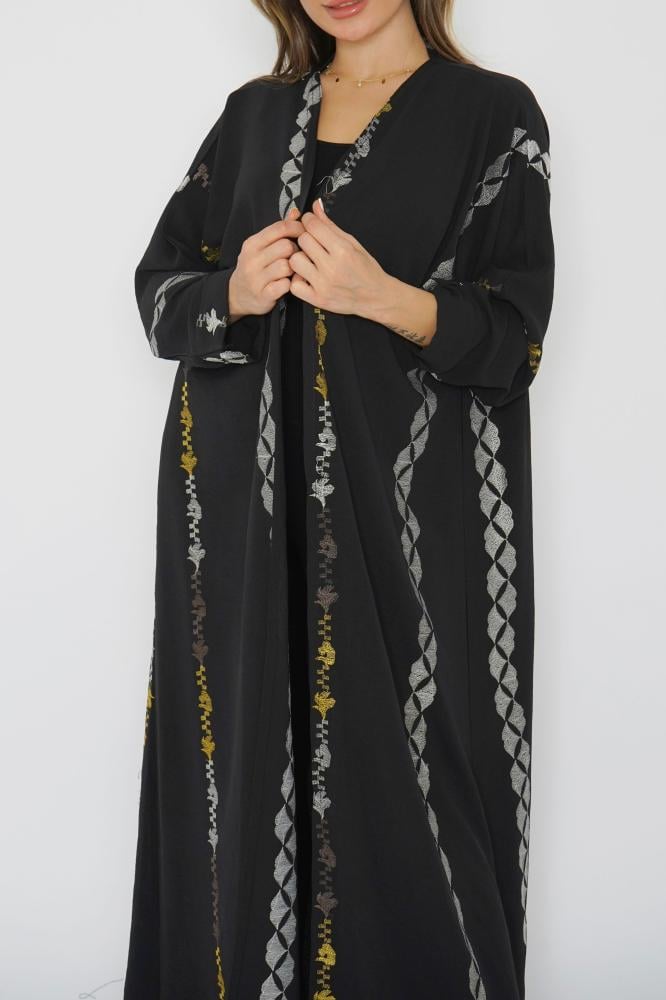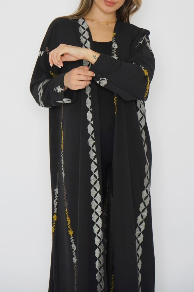أمول – عباية سودا ء بتطاريز لون نحاسي ولون ازرق 6045