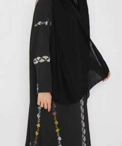 أمول – عباية سوداء بتطريز بأطراف العباية مع كسرات فاخرة من الخلف 6028