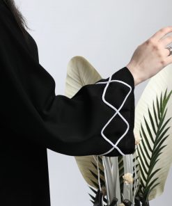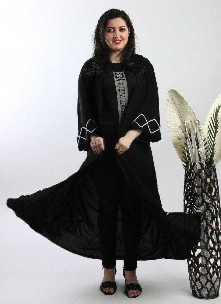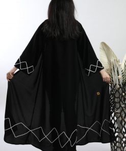 أمول – عباية سوداء بأكمام واسعه ملونة وتطريز مميز R1116