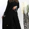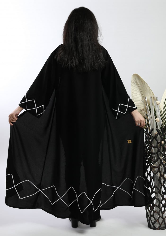 أمول – عباية سودا ء بتطاريز خيوط مقلمة اسود و كحلي ولون اسود دانتيل عروق 6047