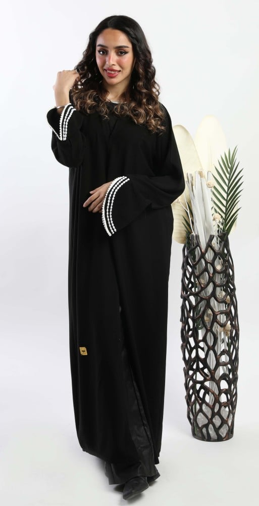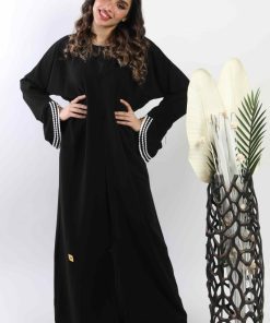 أمول – عباية سوداء بأكمام واسعه ملونة وتطريز مميز R1116