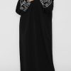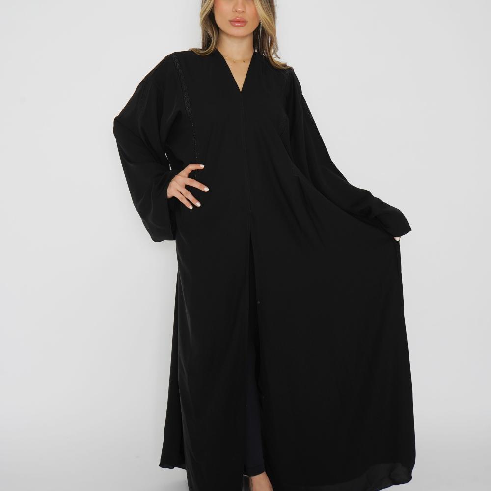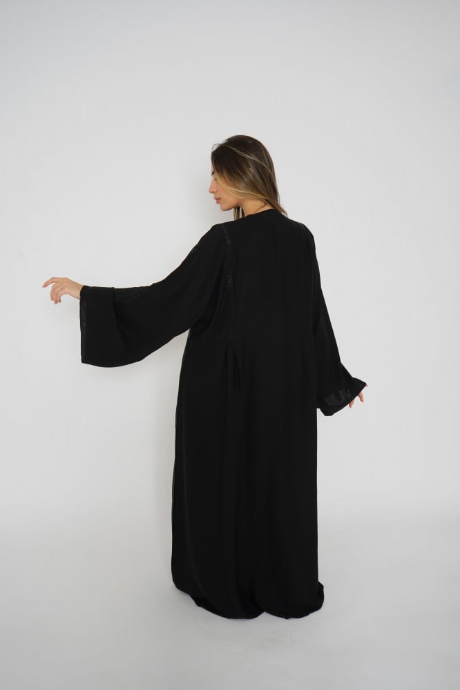 أمول – عباية سودا ء تطريز شك يدوي لون ابيض على شكل ورود 6051