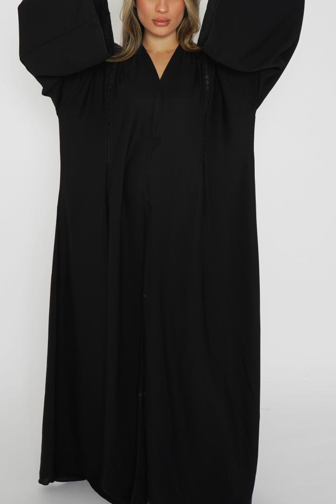 أمول – عباية سوداء بأكمام واسعه ملونة وتطريز مميز R1116