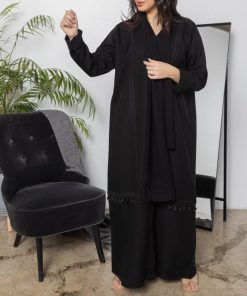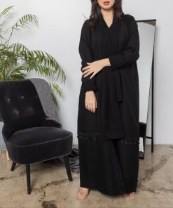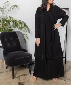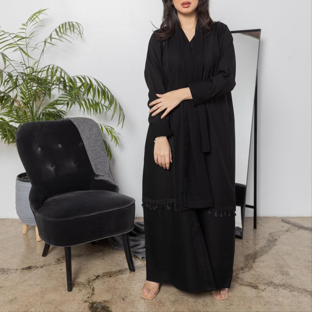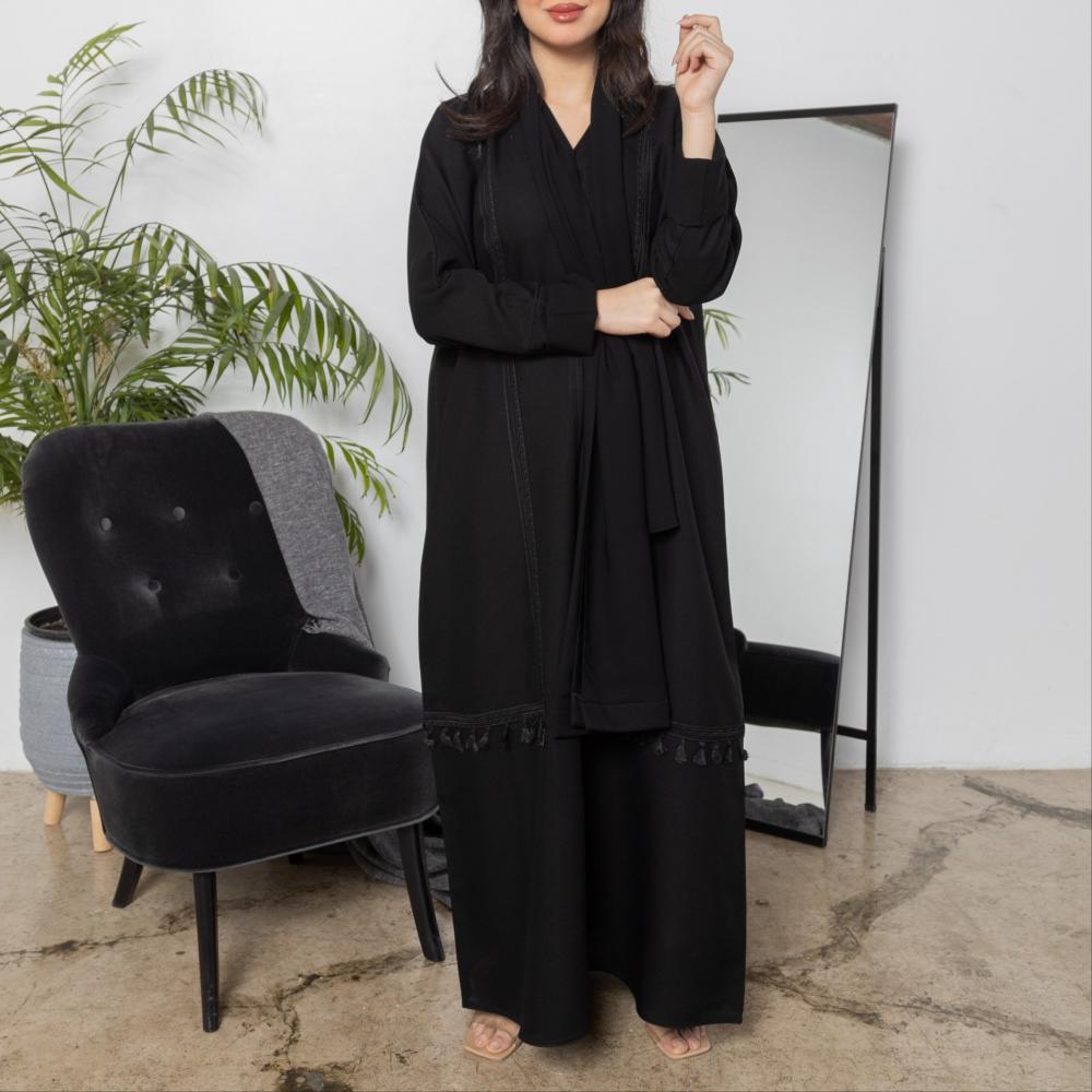أمول – عباية سوداء بأكمام واسعه ملونة وتطريز مميز R1116