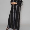 أمول – عباية سوداء بتداخل قماش وفصوص فضية طولية وعلى الكم 5083