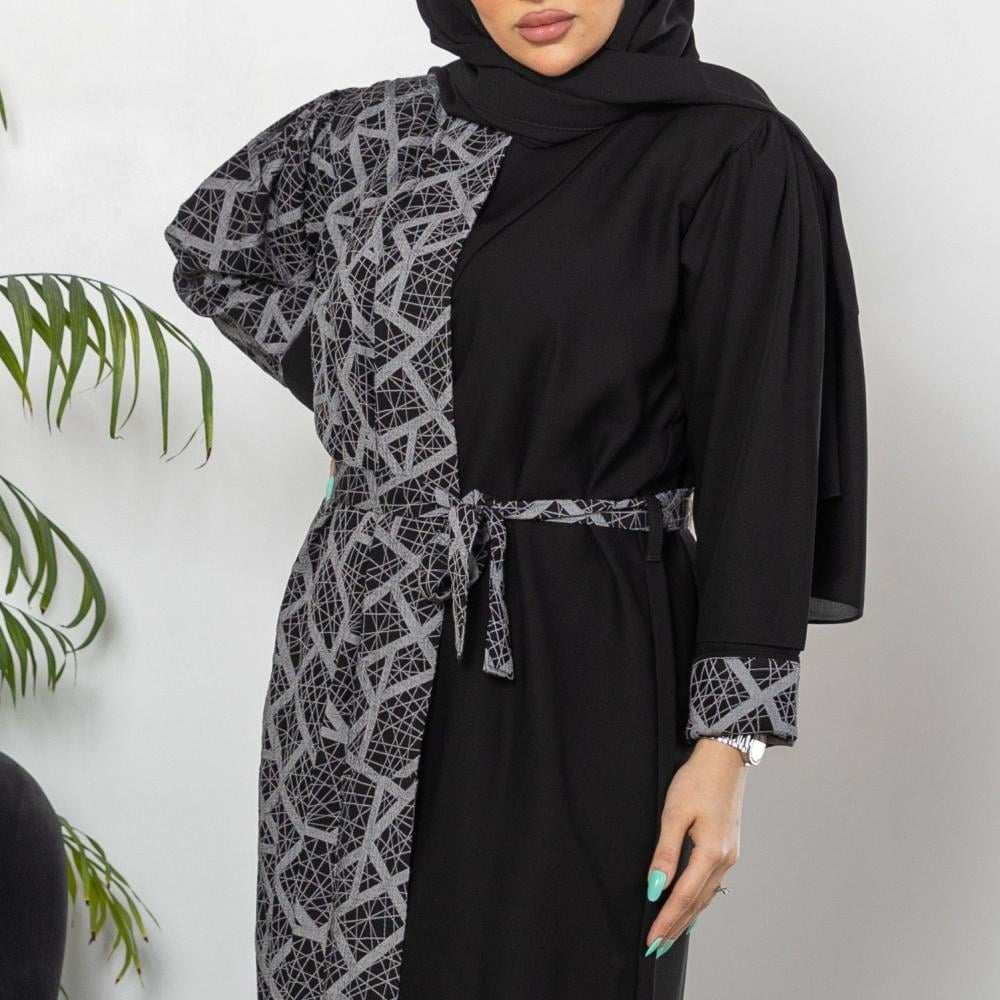 أمول – عباية سوداء بأكمام واسعه ملونة وتطريز مميز R1116