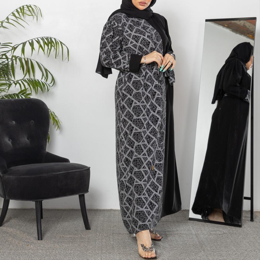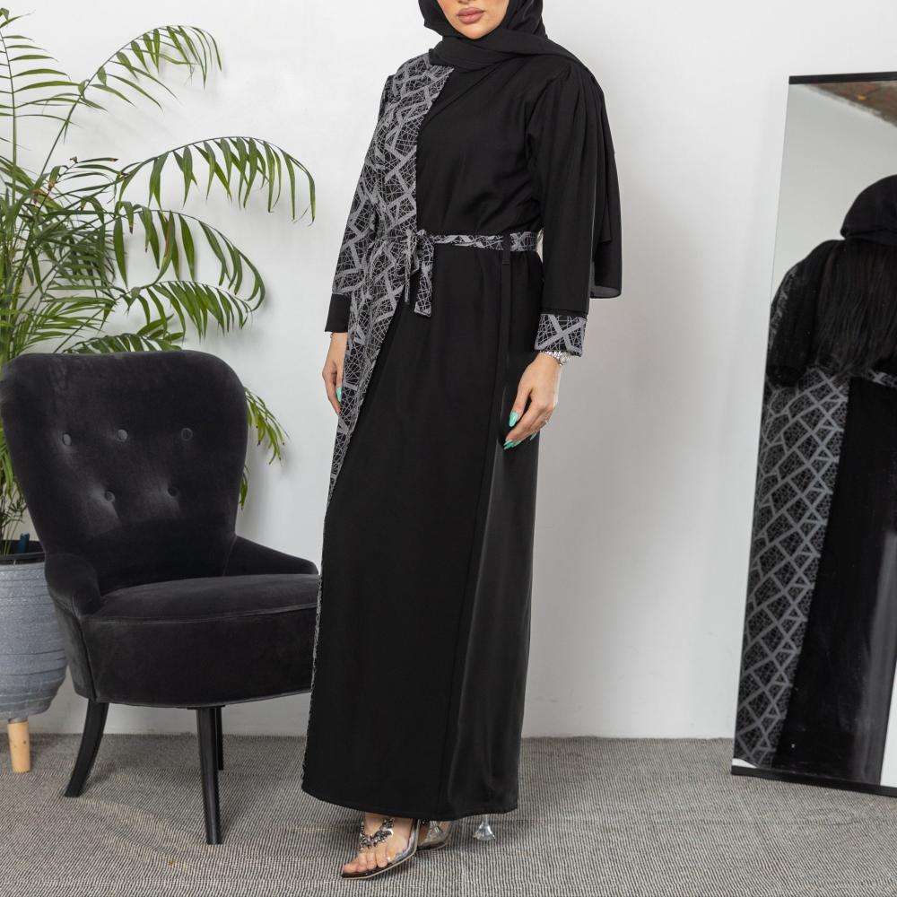 أمول – عباية سودا ء تطريز شك يدوي لون ابيض على شكل ورود 6051