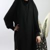 أمول – عباية سوداء بطقطق وجيوب مطرزة من الجنب N1073