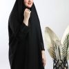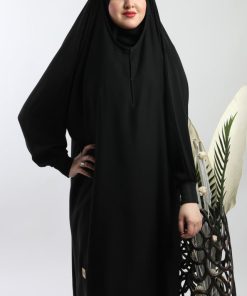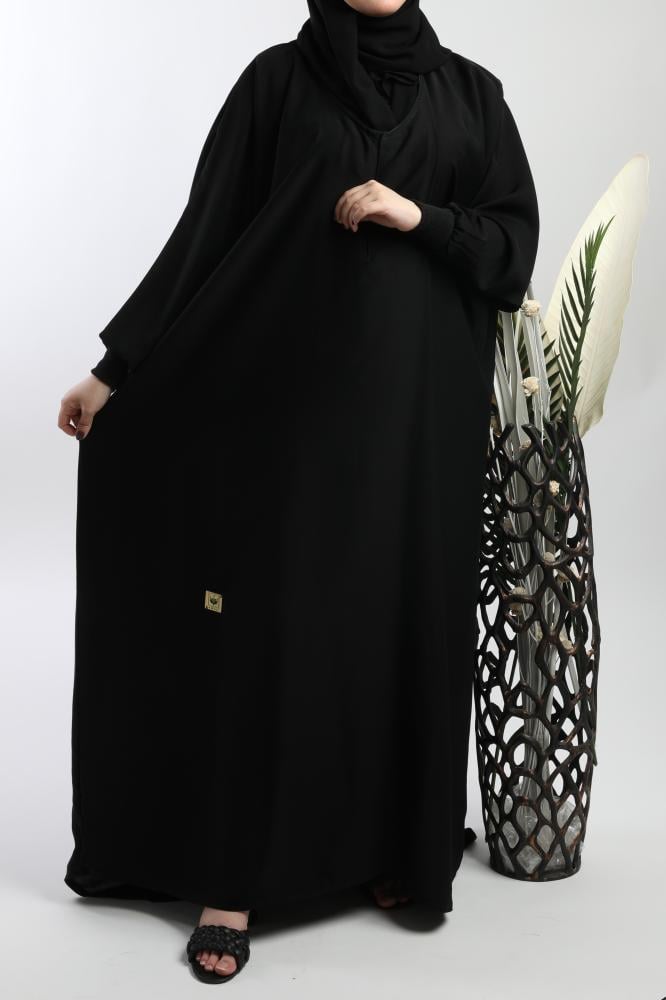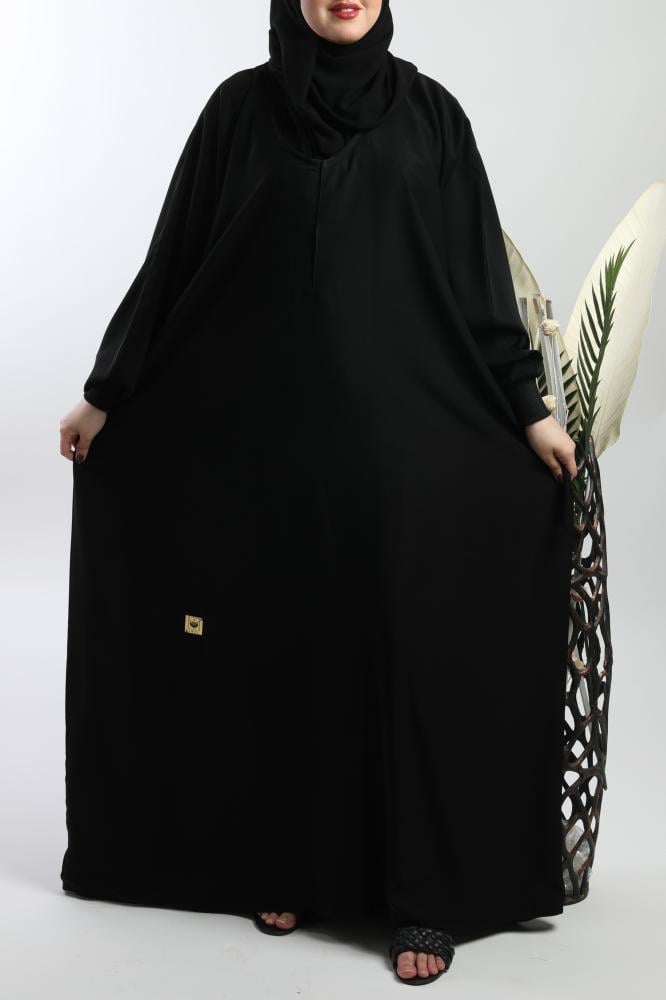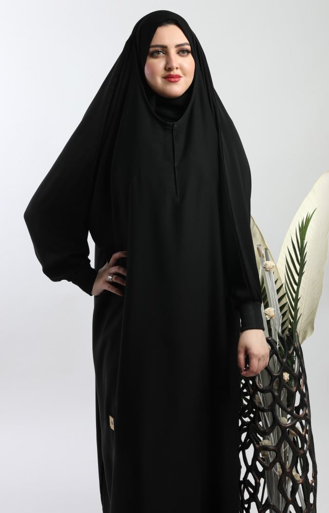 أمول – عباية سودا ء ربع كلوش تطريز كمبيوتر لون ابيض و اسود 6046