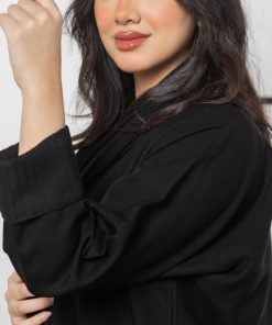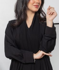 أمول – عباية سودا ء مطرز بخيوط طوليه باشكال متداخله لون ابيض و جالكسي 6058