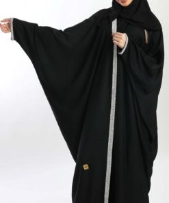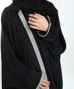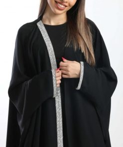 أمول – عباية سودا ء تطريز شك يدوي لون ابيض على شكل ورود 6051