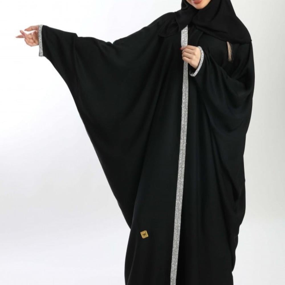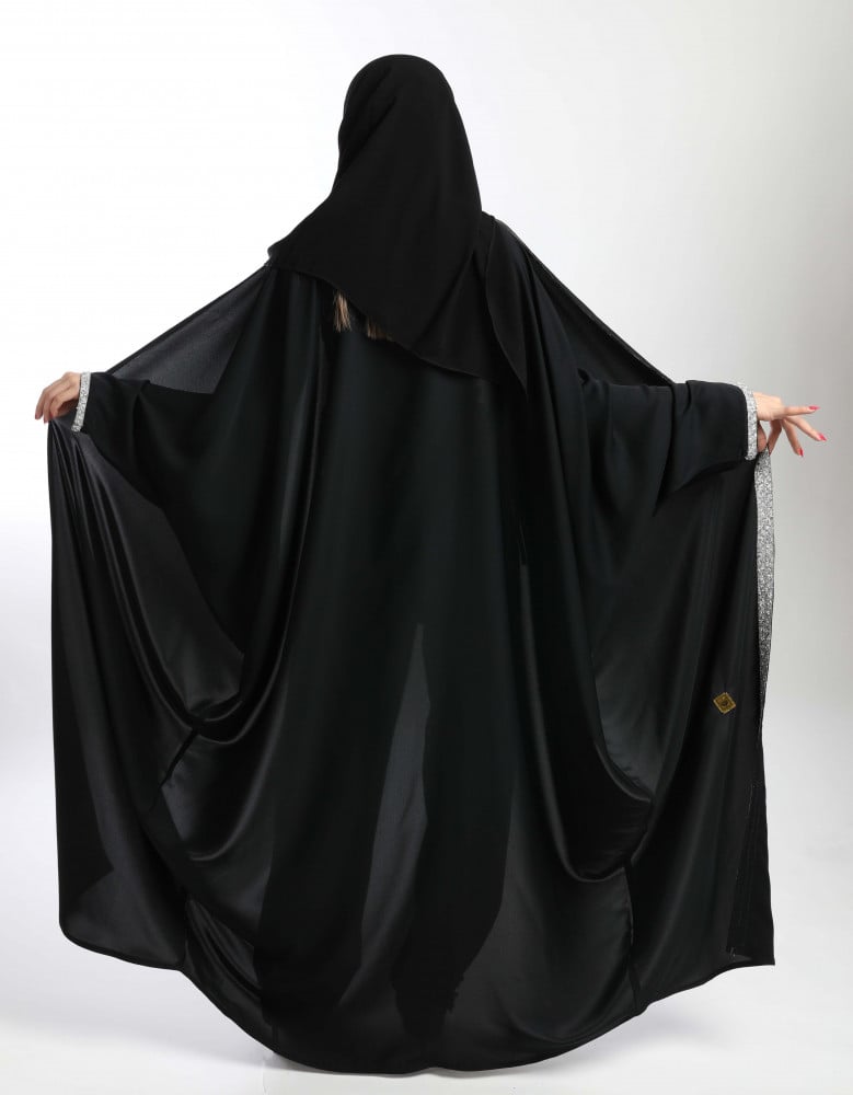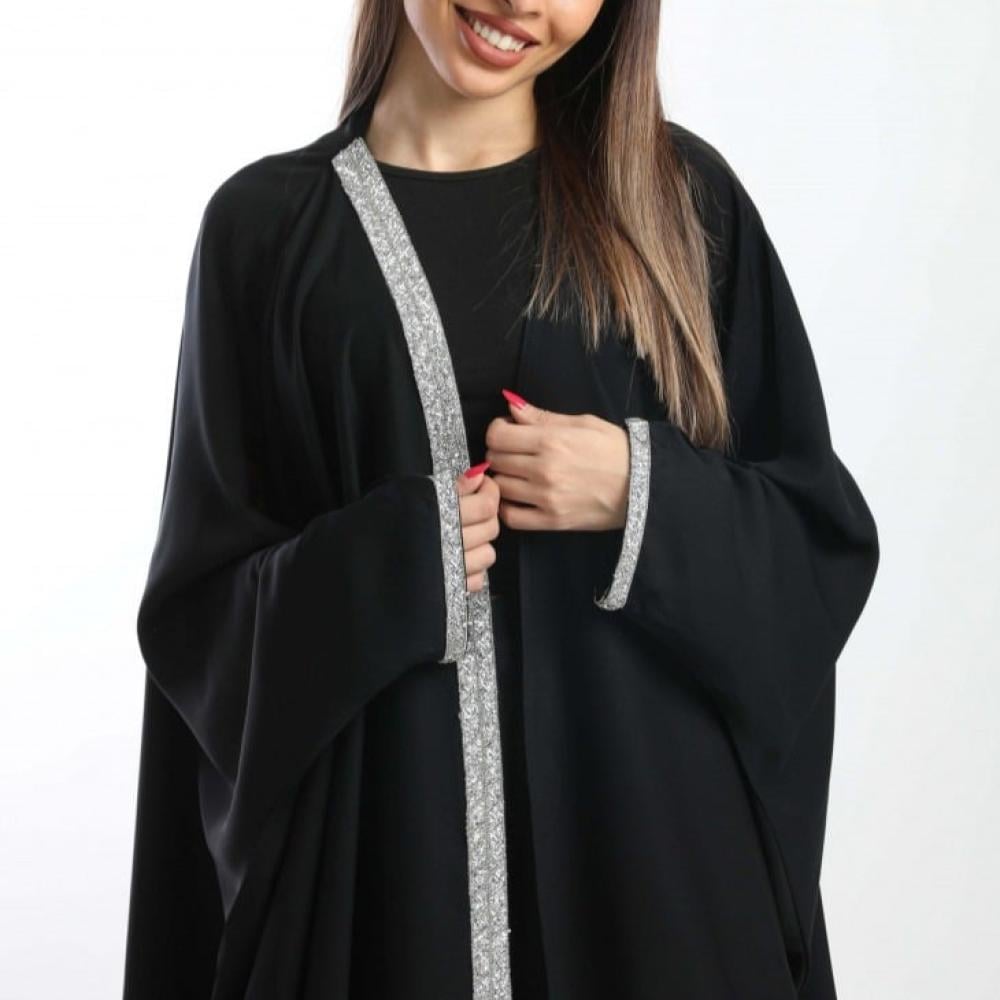 أمول – عباية سودا ء ربع كلوش تطريز كمبيوتر لون ابيض و اسود 6046