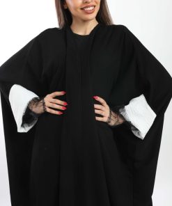 أمول – عباية سودا ء تطريز شك يدوي لون ابيض على شكل ورود 6051