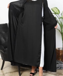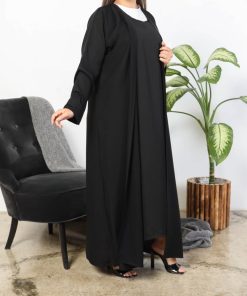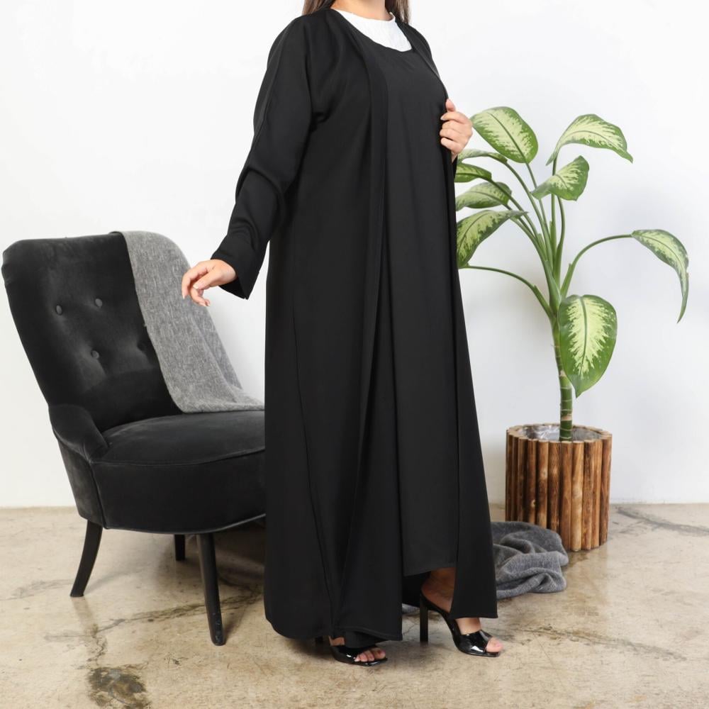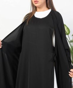 أمول – عباية سوداء بقماش مقلم في الكم والاطراف R1097