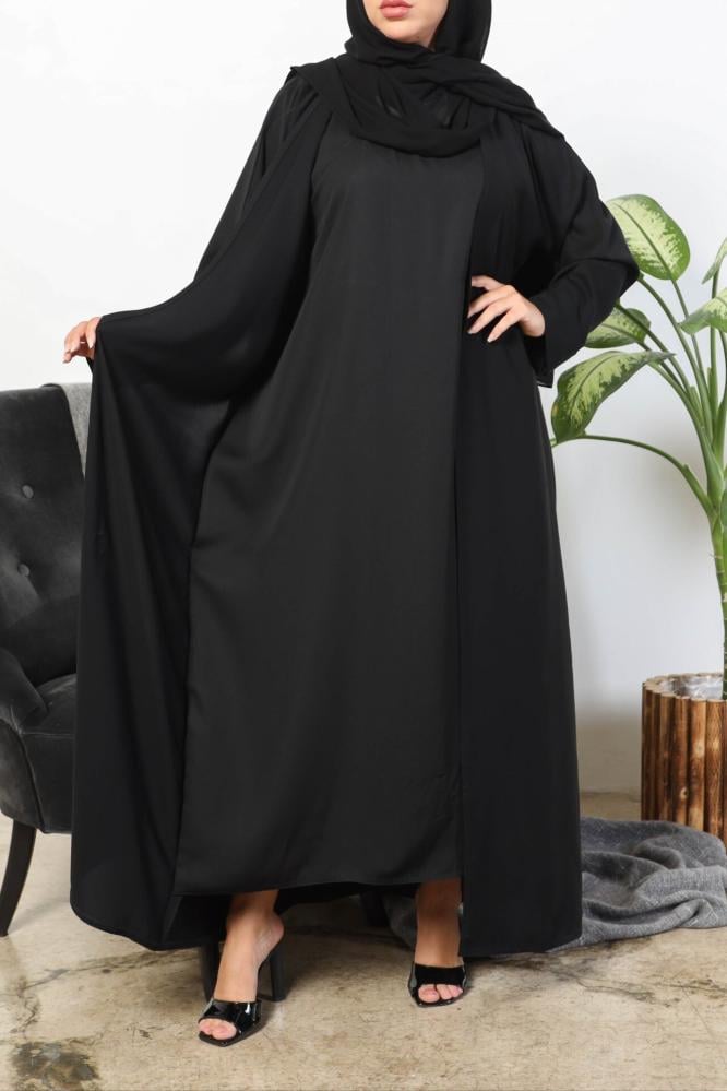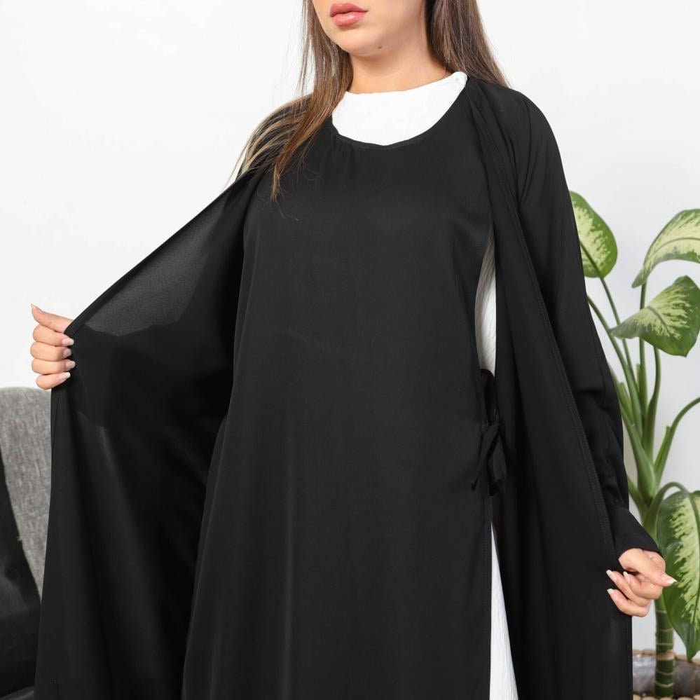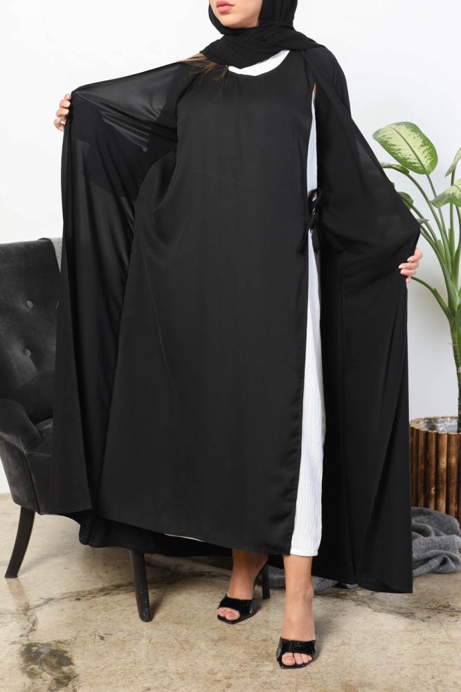 أمول – عباية سوداء بأكمام واسعه ملونة وتطريز مميز R1116